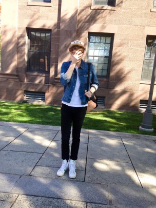 RH: Honestly, that there is some. Like a lot of college campuses have no semblance of style, and at Wesleyan, there seems to be sort of a status quo that the average M.O. is that you care about how you look. And so when you’re in an environment like that, it’s much more entertaining for someone like me, who enjoys seeing what other people wear. And also, if you’re into experimentation, you can go a little bit further than you could in a place like Charlottesville. When I was living in New York, when I was living in Japan, like, those are both places that have a very stylish way of going about things, and I find Wesleyan to be sort of like a microcosm of that.