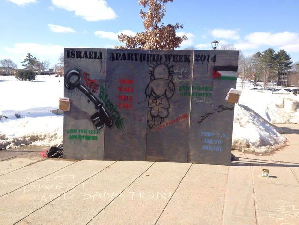Israeli Apartheid Week is an annual, international series of events that, according to its website, aims to raise awareness of Israel’s apartheid policies toward Palestinians and to build support for the BDS movement. In early March, members of SJP collaborated on the aforementioned Wespeak, “Israel’s Apartheid State,” to explain its decision to erect a portable wall, which stood in various locations including Olin Library and Usdan.