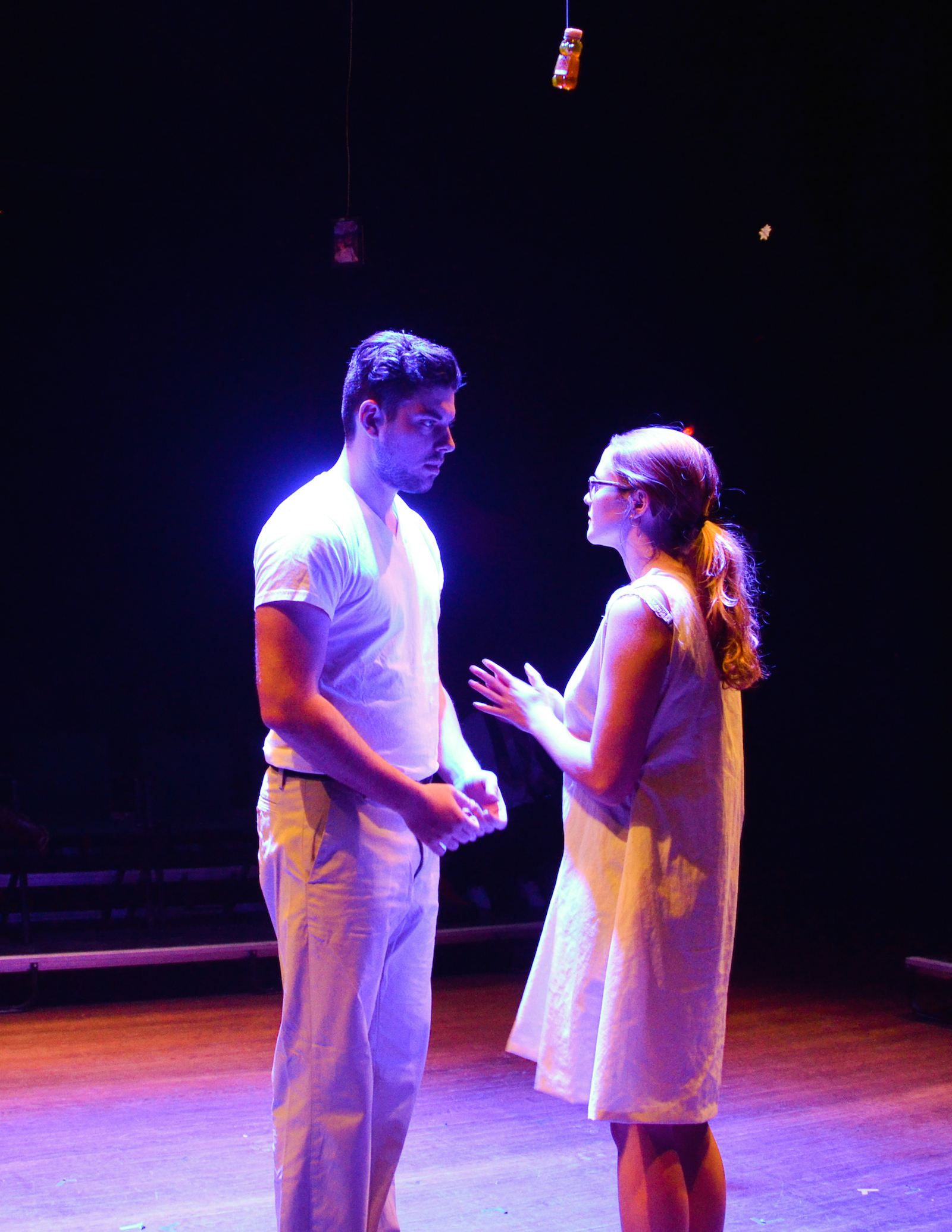 When Marianne (Emma Hagemann ’17) meets Roland (Ward Archibald ’17) at a barbecue, she begins a conversation by asking him why it’s impossible to lick the tip of one’s elbow. Marianne is an academic with a concentration in what she calls “theoretical early universe cosmology.” Roland is a beekeeper. Despite their wildly different lifestyles, the two embark on a journey. Each scene is replayed multiple times, imagined with different factors and outcomes, existing in various parallel universes that, when woven together, form a so-called “multiverse.”
