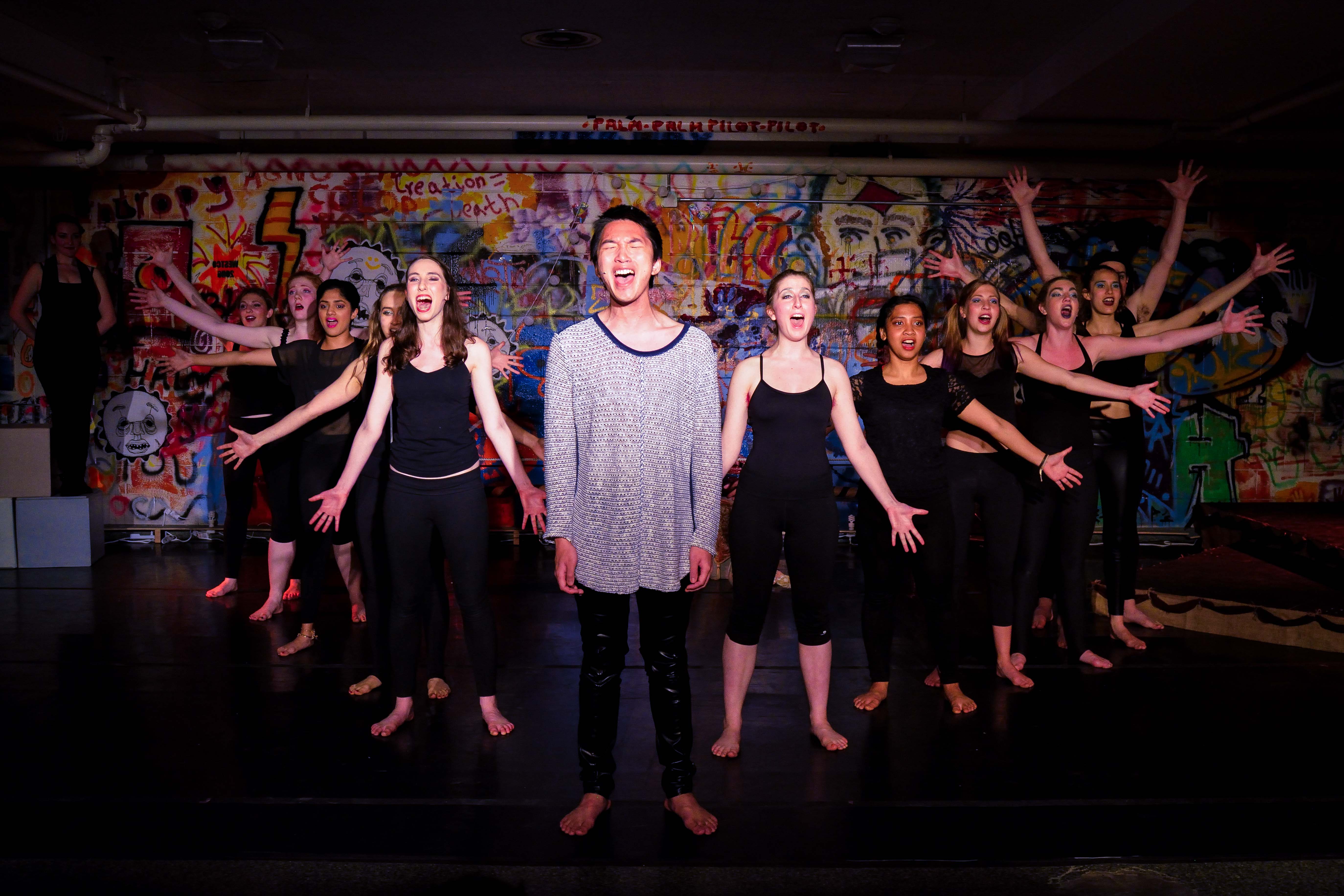 The tickets for each performance sold out in a matter of minutes, which didn’t keep eager students from waiting in line 90 minutes before the show to put their names down on the wait list. As I entered the venue, the magic of “Pippin” began to reveal itself through lighting designed by Phillip Heilbron ’18, which eloquently illuminated the graffiti on the wall. It created the perfect backdrop to provide “Pippin” with a new identity, as if it had been adapted for the unusual space of Westco Café.