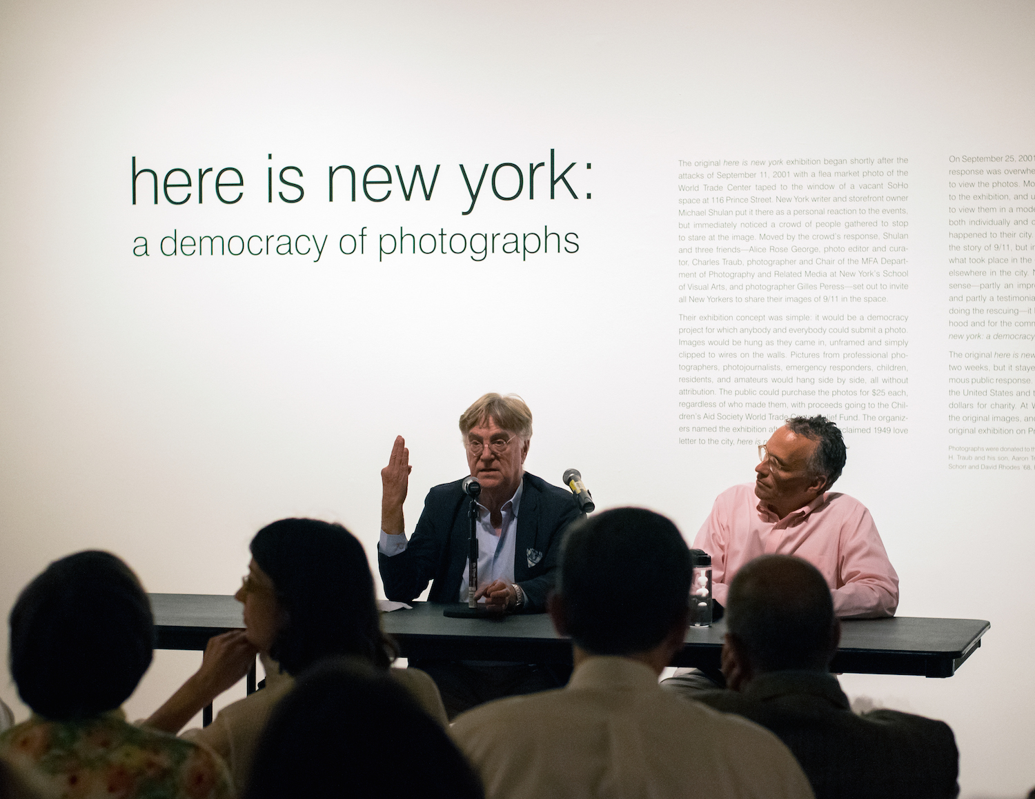 On the evening of Tuesday, Sept. 13, “here is new york” made its Connecticut premiere at the Ezra and Cecile Zilkha Gallery at the University. The opening of the exhibition was accompanied by an emotionally provocative Q&A discussion between President Michael Roth and world-renowned photographer, educator, author, and pioneer of the project Charles Traub.
