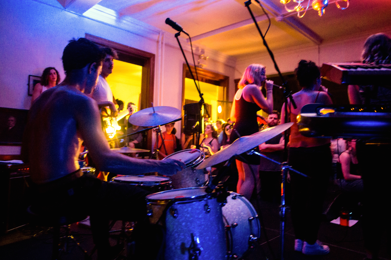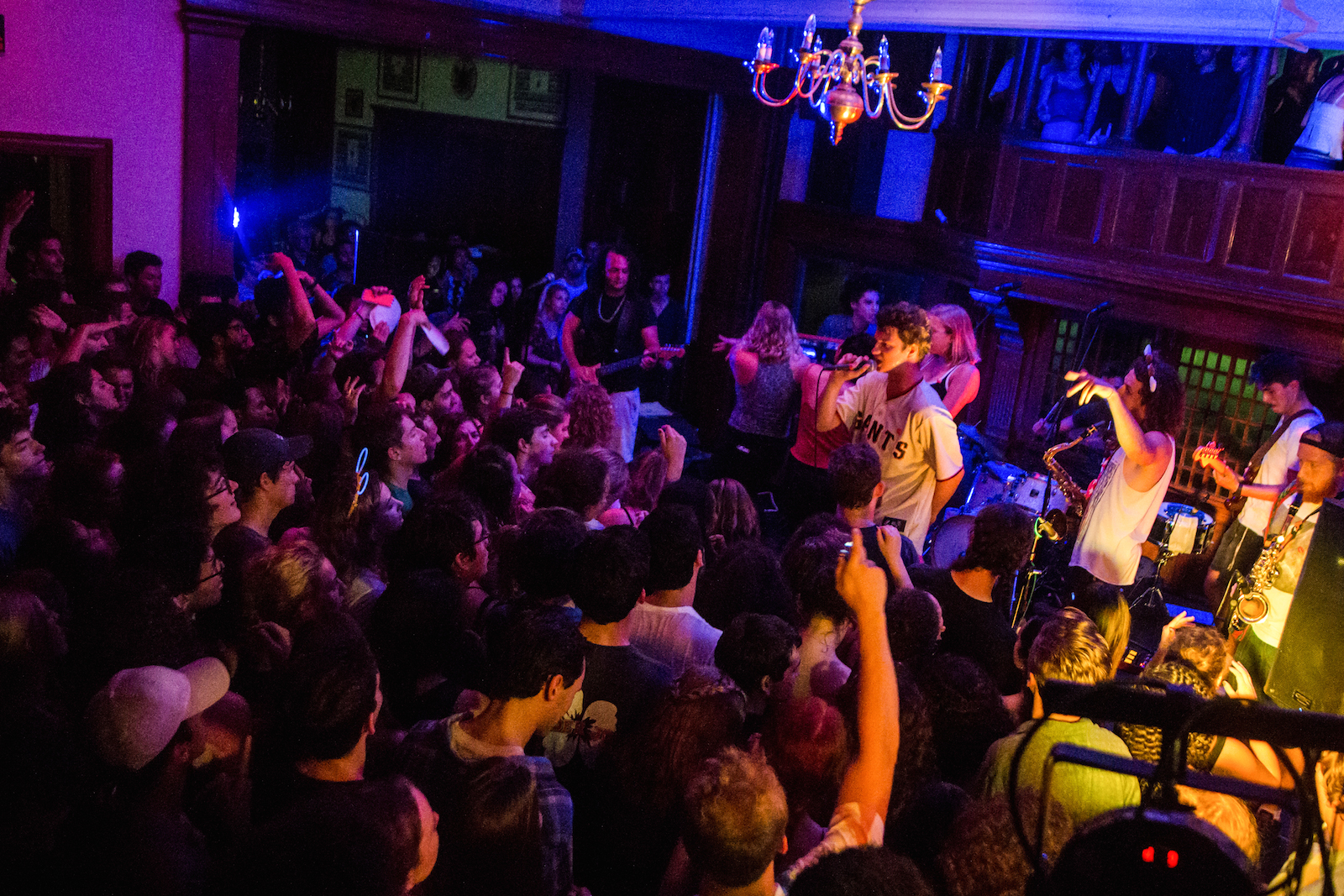 The crowd reached capacity before the show even began. Reinforcements were sent to the door, and back entrances were patrolled as scores of students began to pour down College Row, crowding the entrance of the oldest house on campus.