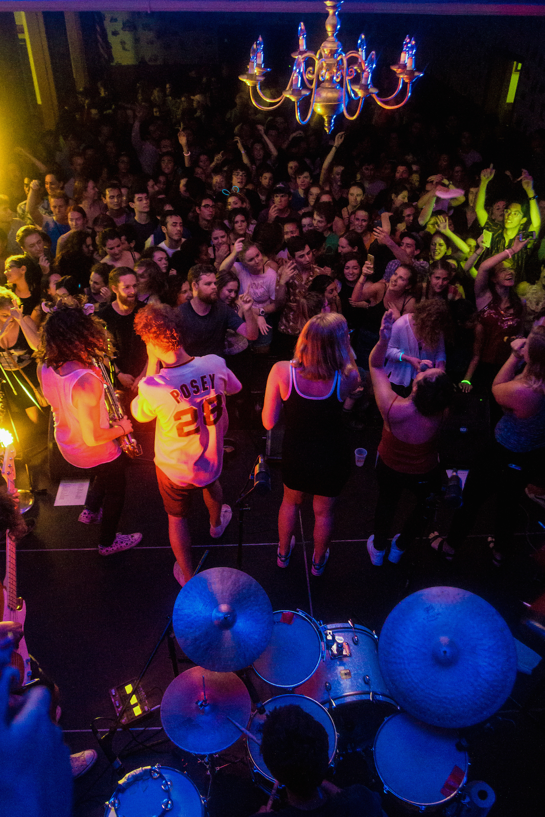 Kinder kept the beat going while glistening shirtless under the lights at Psi U halfway through the set as the crowd began to sing along to songs they just learned. Butler-Brown shined in several guitar solos, while on the opposite side of the stage, Molski and Luton threw the vibe back to the ’70s with their own riffs on the sax. Dean made the room even funkier with a whirling display on the bass that kept the lengthy set list churning along without a worry.
