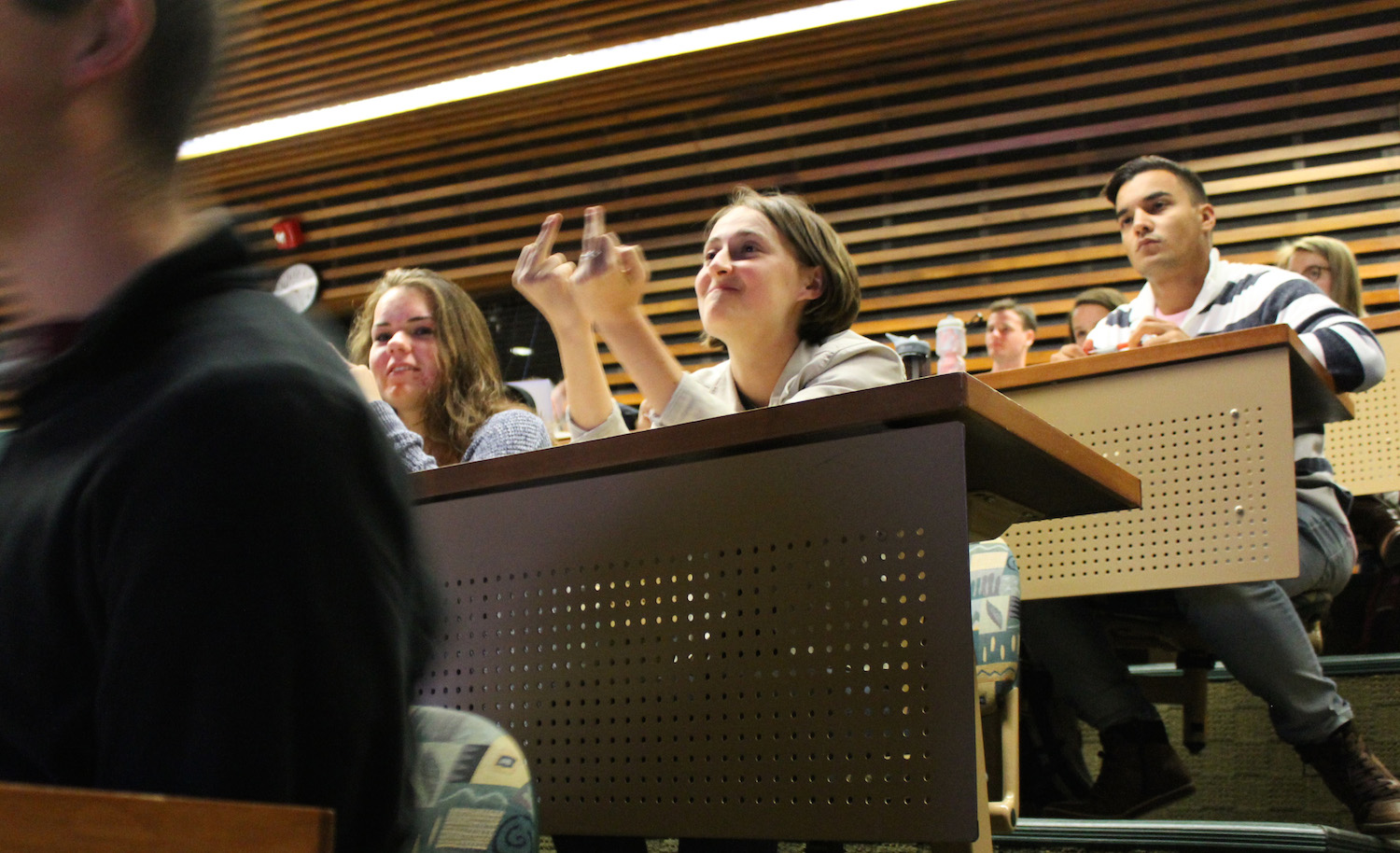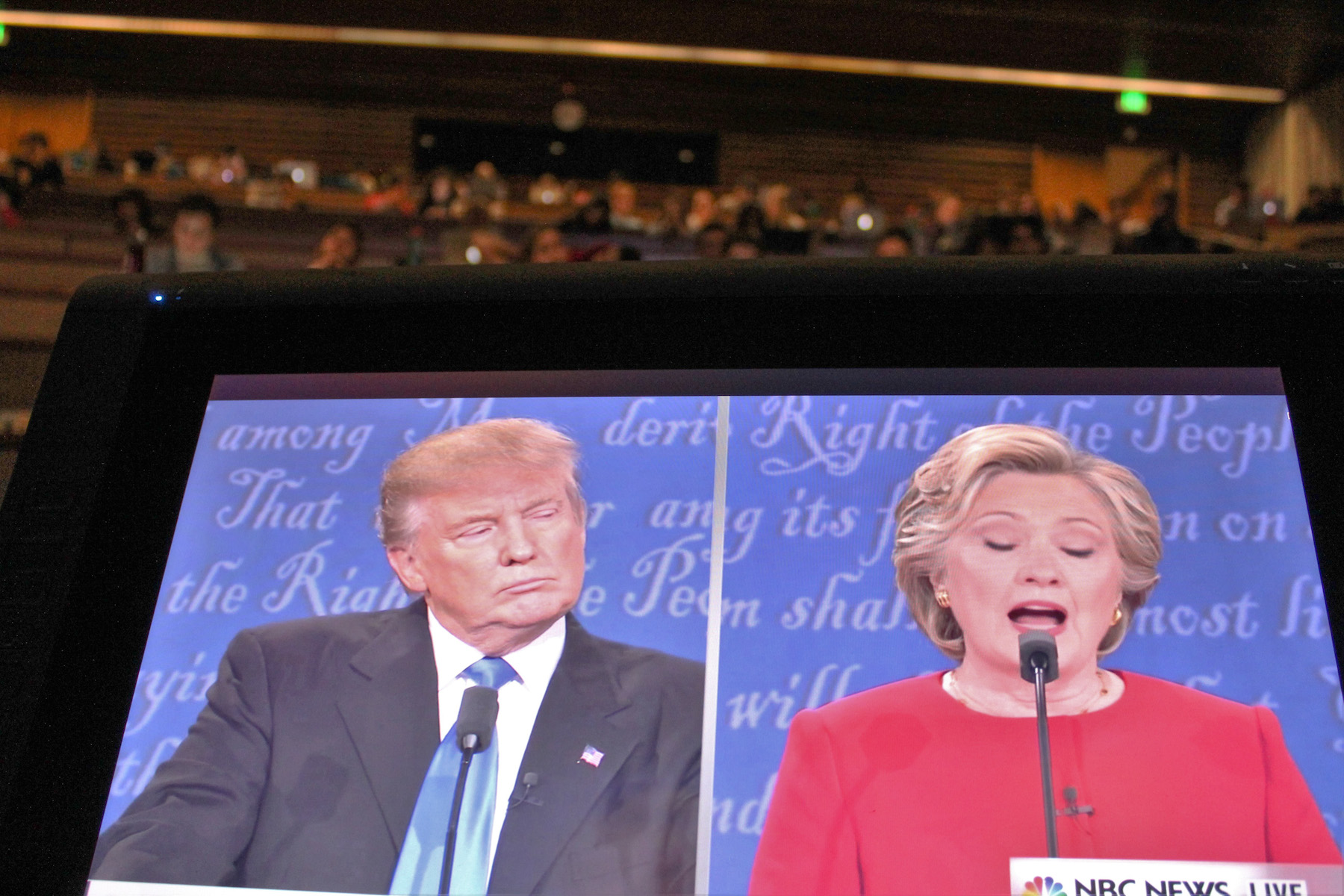 Arcadia Magazine asked the audience to be respectful and avoid arguments or fights, but acknowledged that the hall need not be silent. Students were vocal throughout the debate, expressing their reactions at various poignant or memorable moments. There was a clear bias for presidential nominee Hillary Clinton in the room, evidenced by the reactions of the crowd throughout the event.