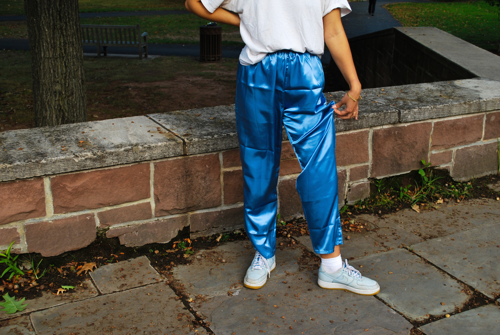 Like many students here, Strange is not new to thrifting; in her hometown of Portland, Ore., a 147,000-square-foot Goodwill outlet—lovingly coined “the Bins”—reigns supreme among locals and college students alike, well-known for its $2/pound deals and rough-around-the-edges atmosphere (shoppers have been known to fight over certain pieces and are advised to come wearing gloves). Some of Strange’s favorite Bins finds include white painter’s jeans and silky slip dresses, pieces which she has not necessarily had difficulty finding here but which ring in at slightly steeper prices.