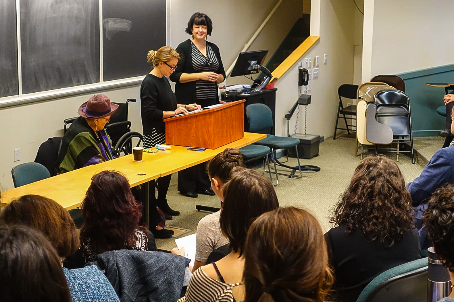 After Harjo’s keynote address, panelists Cohen, Thomas, Farris, and Turnbull joined Harjo for a discussion, which later opened to a Q&A with the audience. Current chair of the American Studies department and Professor of Anthropology J. Kēhaulani Kauanui introduced the panel, contextualizing the conversation by chronicling her own struggles with the University administration in advocating for the hiring a NAGPRA coordinator, demanding University compliance with NAGPRA, and hosting events associated with the legislation surrounding indigenous rights activism. Upon receiving tenure in 2007, Kauanui began to push on NAGPRA compliance, citing the storage of human remains in Exley Science Center as a violation of the legislation, and also a catalyst for her role in the process.