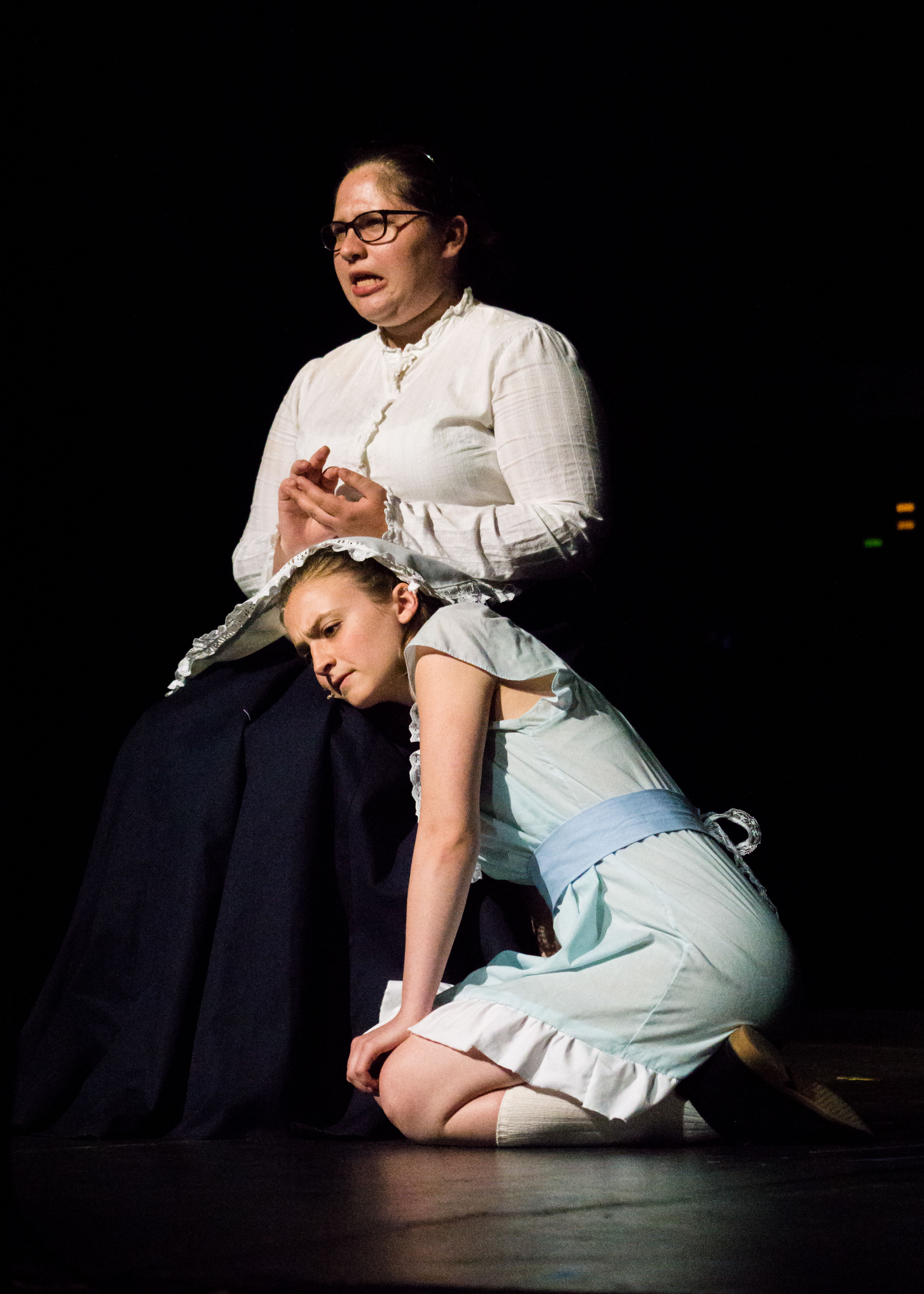 Those familiar with the show will notice the ambiguity introduced in the rape scene at the end of the first act. Although the 2006 Off-Broadway production showed Melchior clearly raping Wendla, the Broadway production and many other recent productions have shown Wendla enthusiastically and affirmatively having sex with him. The University production introduces the question of whether Wendla is able to consent if she doesn’t even know what sex is. There is a clear power dynamic at play in that he has thorough sexual knowledge and is initiating the sexual component of their relationship. Changing Melchior’s character from a perpetrator of violent sexual assault to a coercive horny teenager renders him all the more complex and sympathetic, allowing the audience to more wholeheartedly align with the youthful characters. It’s a bold choice in a production full of bold choices.