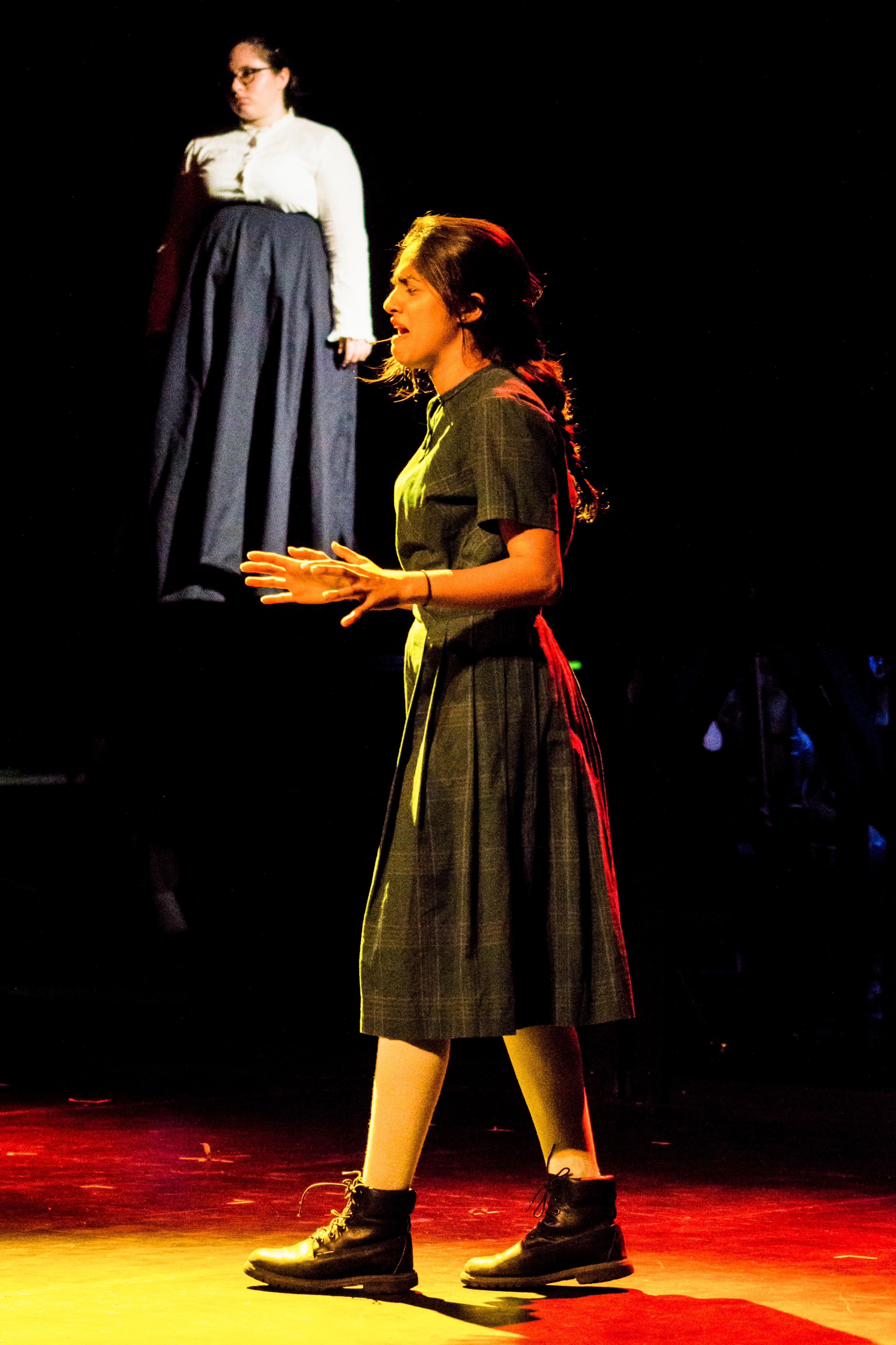 And, aptly, both the acting and singing are simply incredible. Mullen and O’Shea are consistently excellent. “Mama Who Bore Me (Reprise)” is technical and beautiful, with the cast making it seem like an easy feat. Act II’s “Totally Fucked” is an energetic homage to miserable, frustrating teenage angst, enhanced by Shana Laski’s choreography. It’s difficult to transmit the anger and fear that her character experiences as a young girl who is physically, emotionally, and sexually abused by her father, but Sanam Godbole ’19’s rendition of “The Dark I Know Well” is stunning.