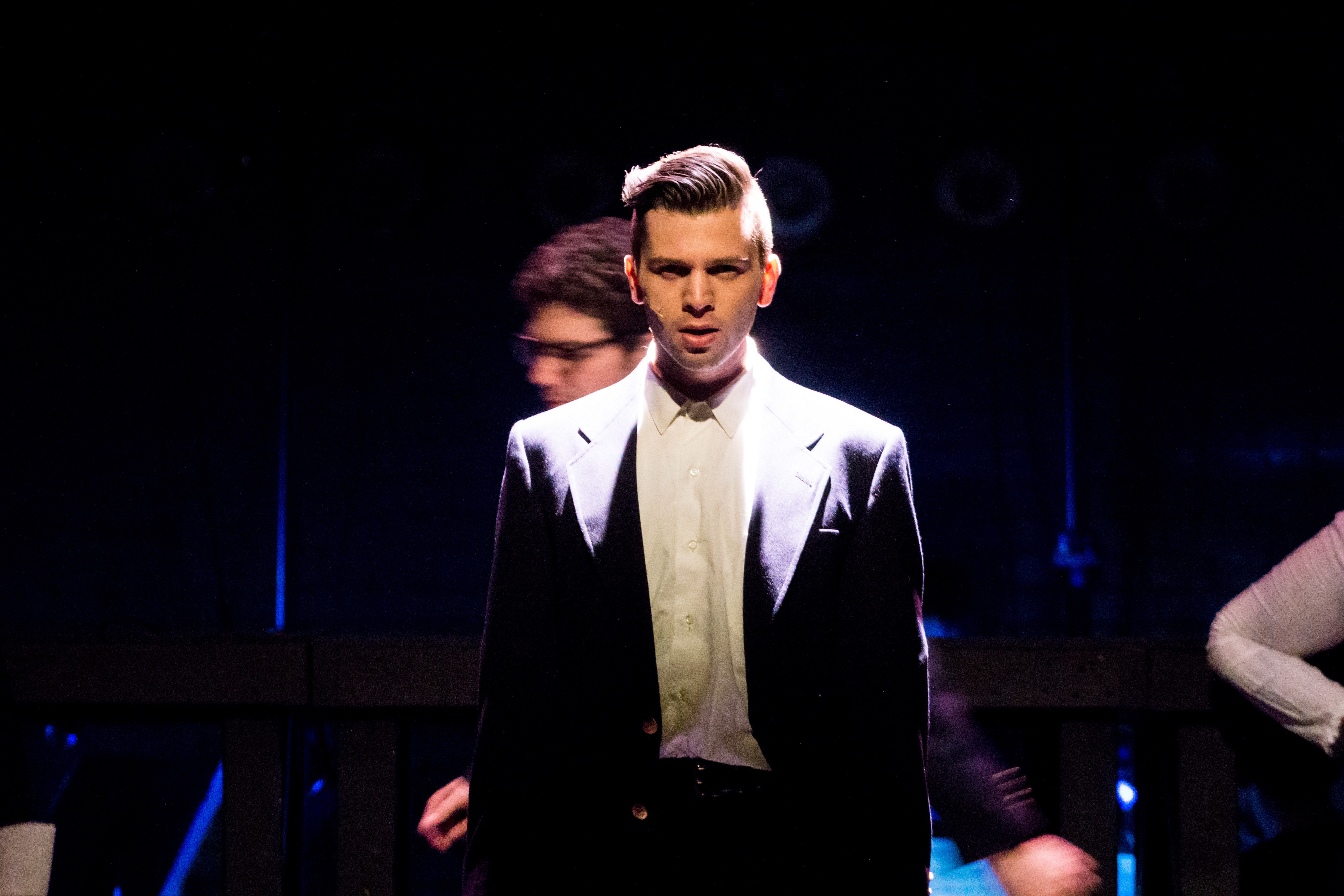 The nine-member band, conducted by Sam Friedman ’18, expertly plays the showtune-meets-rock soundtrack. Onstage drama speaks for itself, supported by a simple set designed by Daniel Gordon ’19. And Zack Lobel ’19’s clever lighting enhances the performance with concert-like cues that include old-fashioned lightbulbs hanging from the ceiling, flickering at various times to help to contextualize the play within late 19th-century Germany.