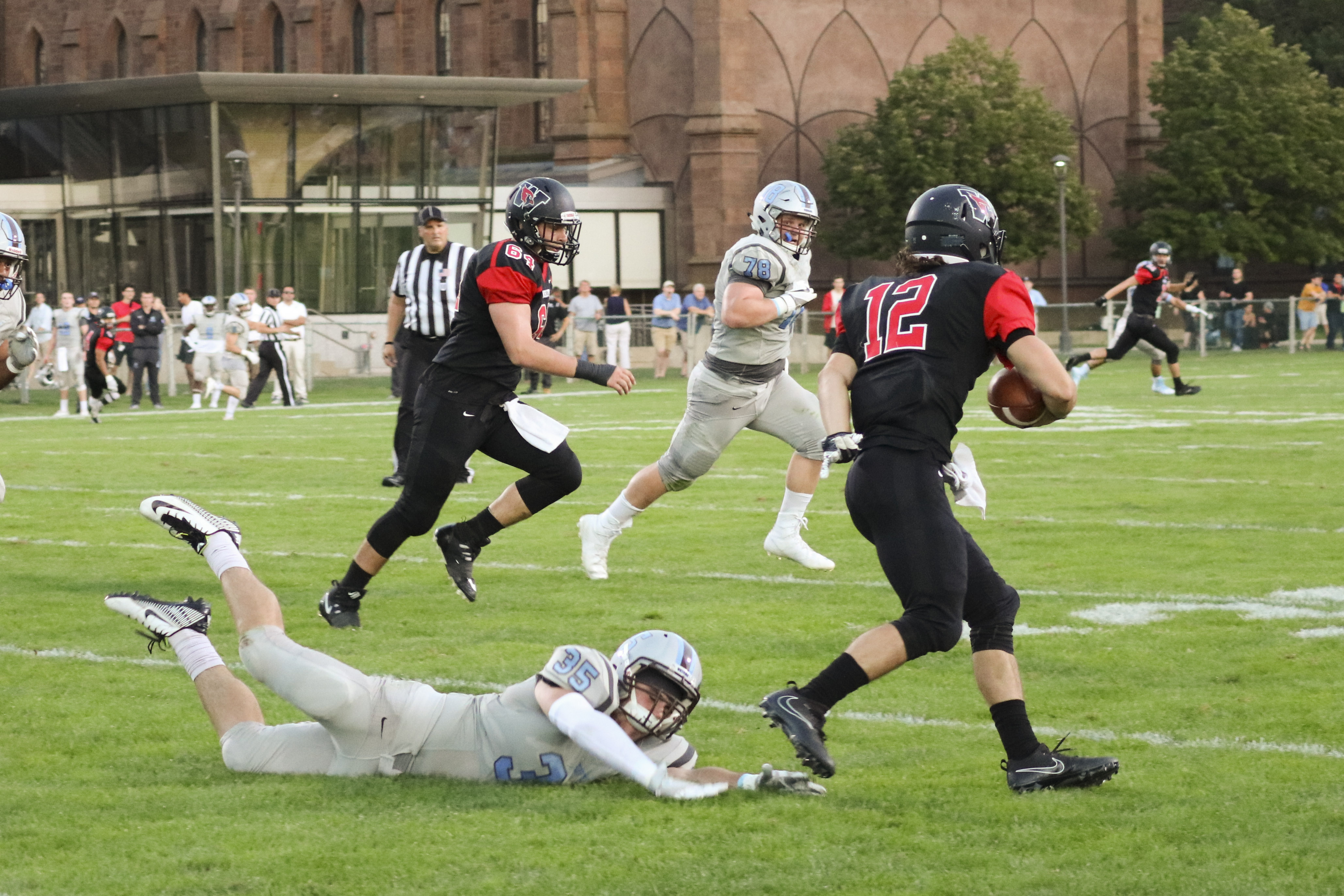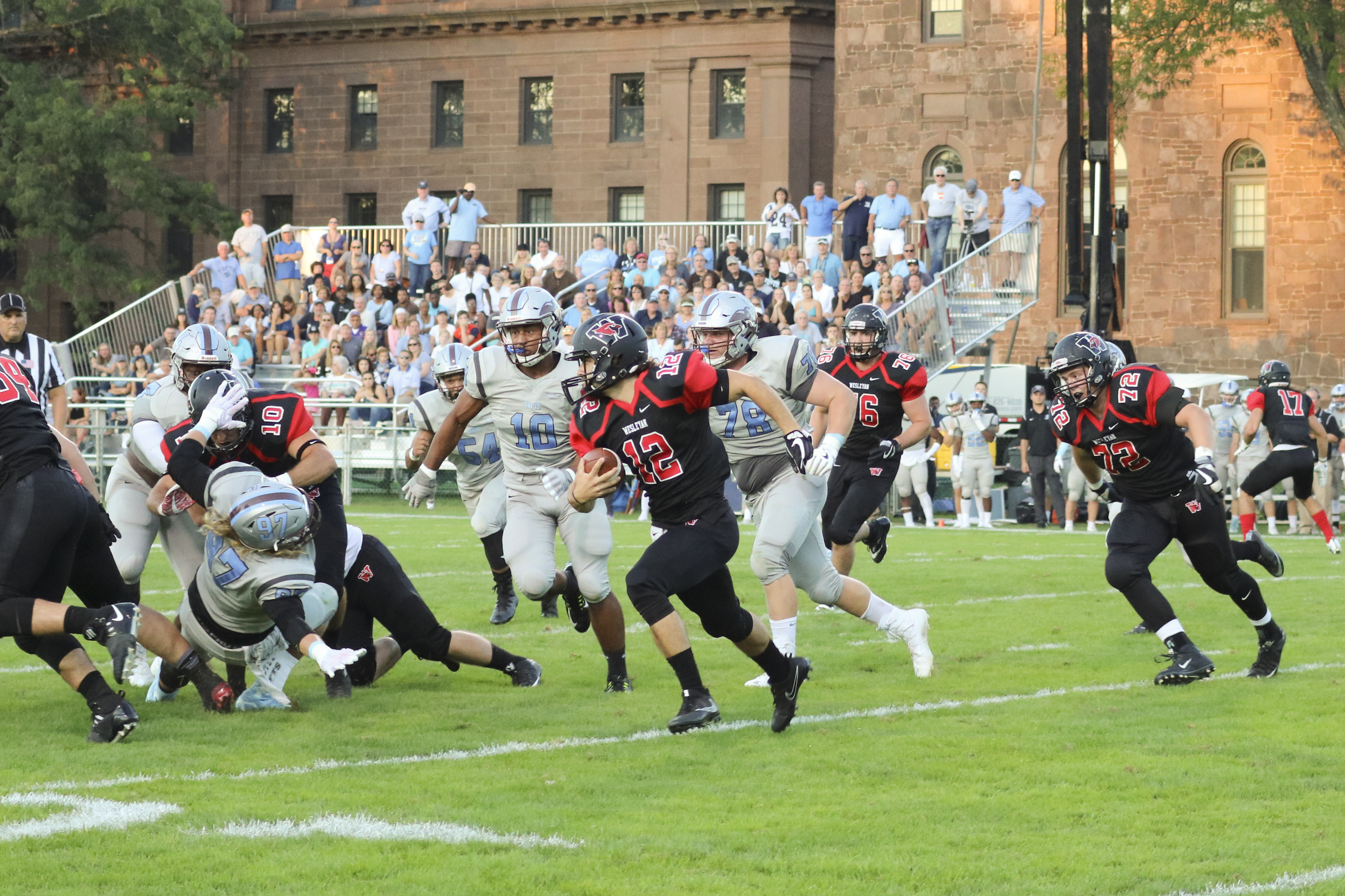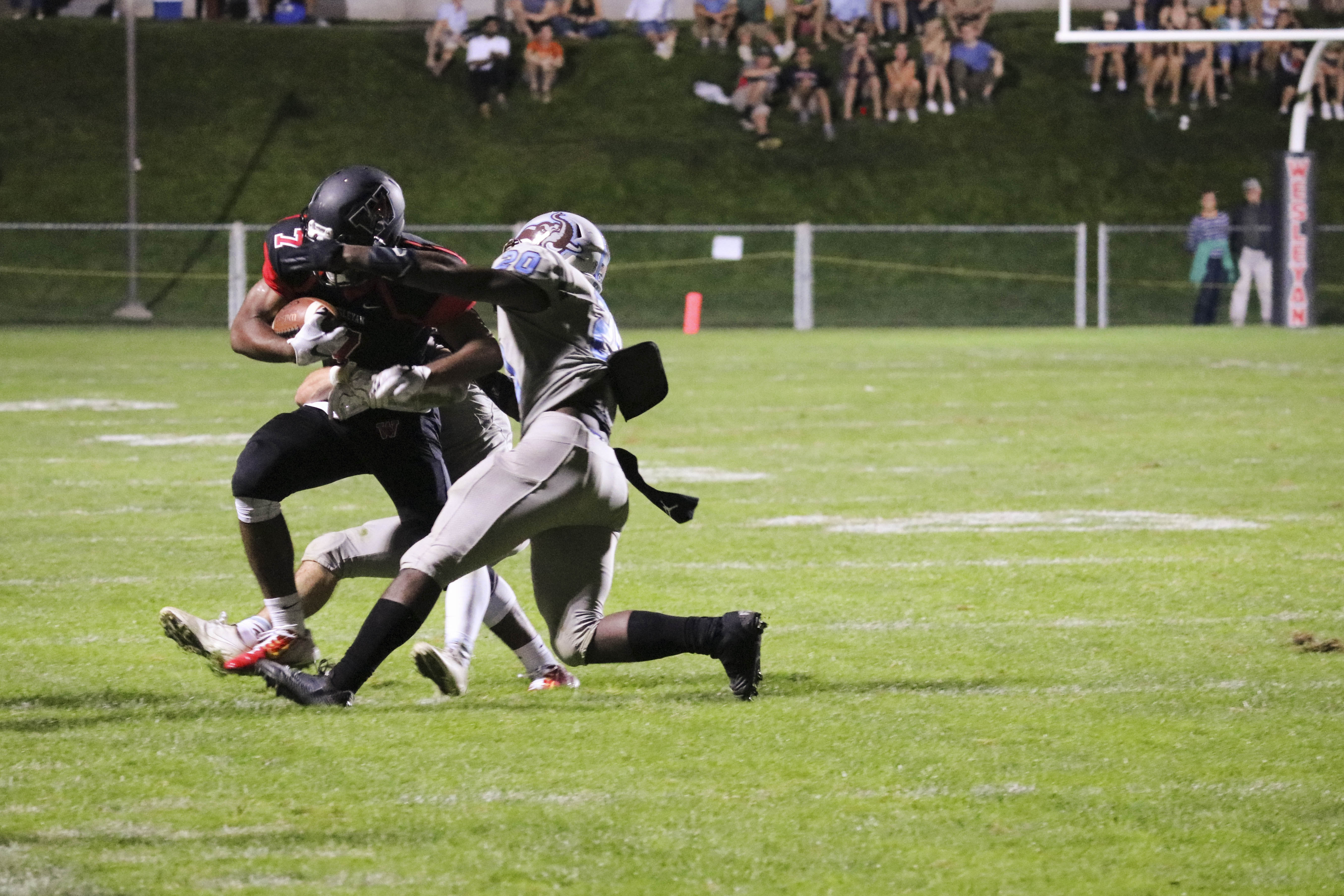 However, as soon as the fourth quarter started, the sparks began to fly. Wesleyan gave up a punt return touchdown four plays into the quarter but quickly launched a counter-attack behind Piccirillo’s strong arm to bring the score to 10-17. The Cardinal defense stood strong for the rest of the quarter, not even letting Tufts advance past the Wesleyan 40 yard line.