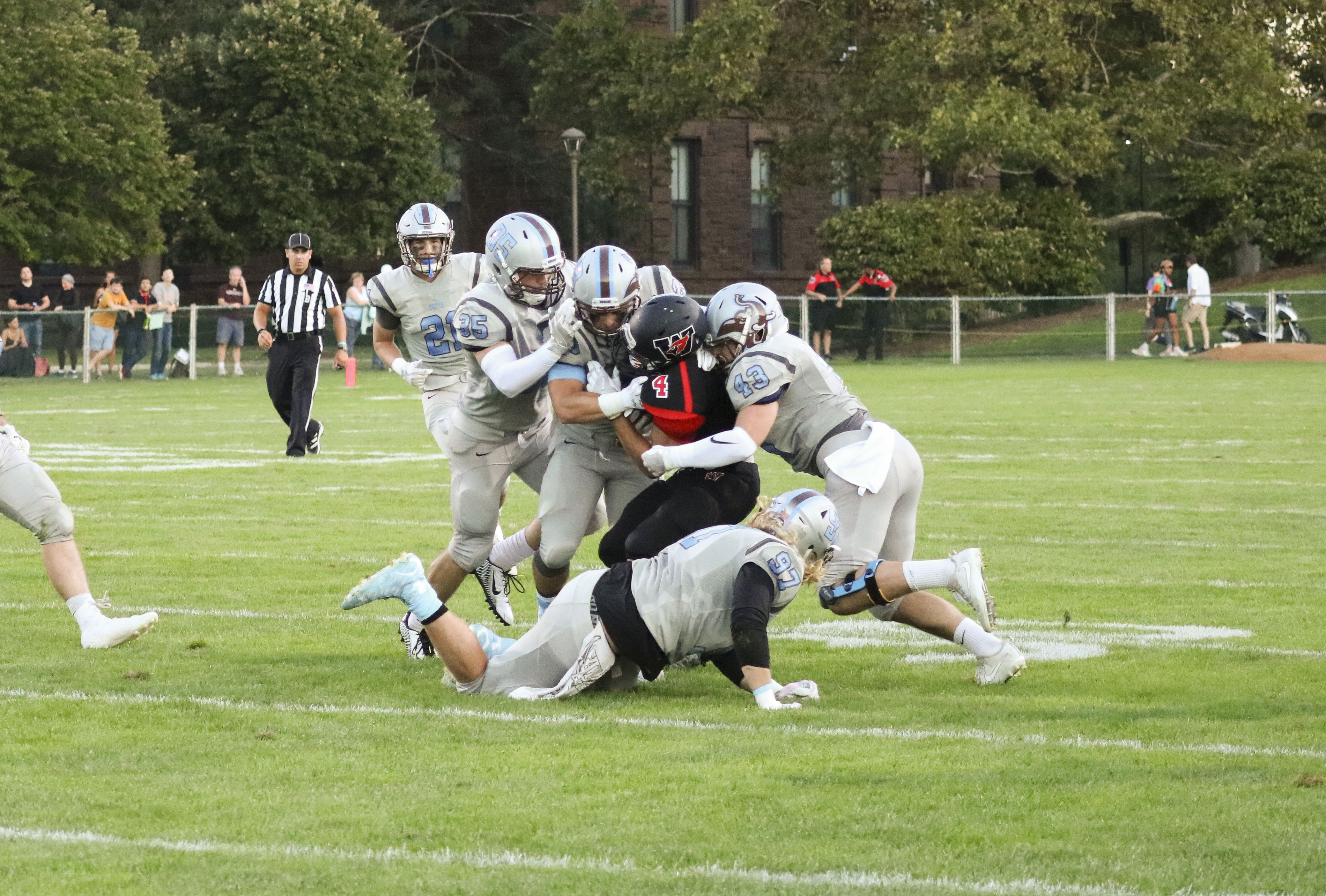 The Red Birds started the third quarter off well, forcing Tufts to a three and out on their opening drive. Following that defensive stop, the Cards were able to immediately get on the board with a field goal on their first drive of the half. Even after a punt on third down by Piccirillo, the Wesleyan defense was able to launch a goal-line stand after a series of Tufts penalties that negated a touchdown and lost them valuable yards. But neither team was able to capitalize on the other’s mistakes and mostly resorted to gaining tough yards on the ground; a total of three yards were gained throughout the entire quarter through the air. But despite Tufts’ lead, it was still a close game that hung in the balance.