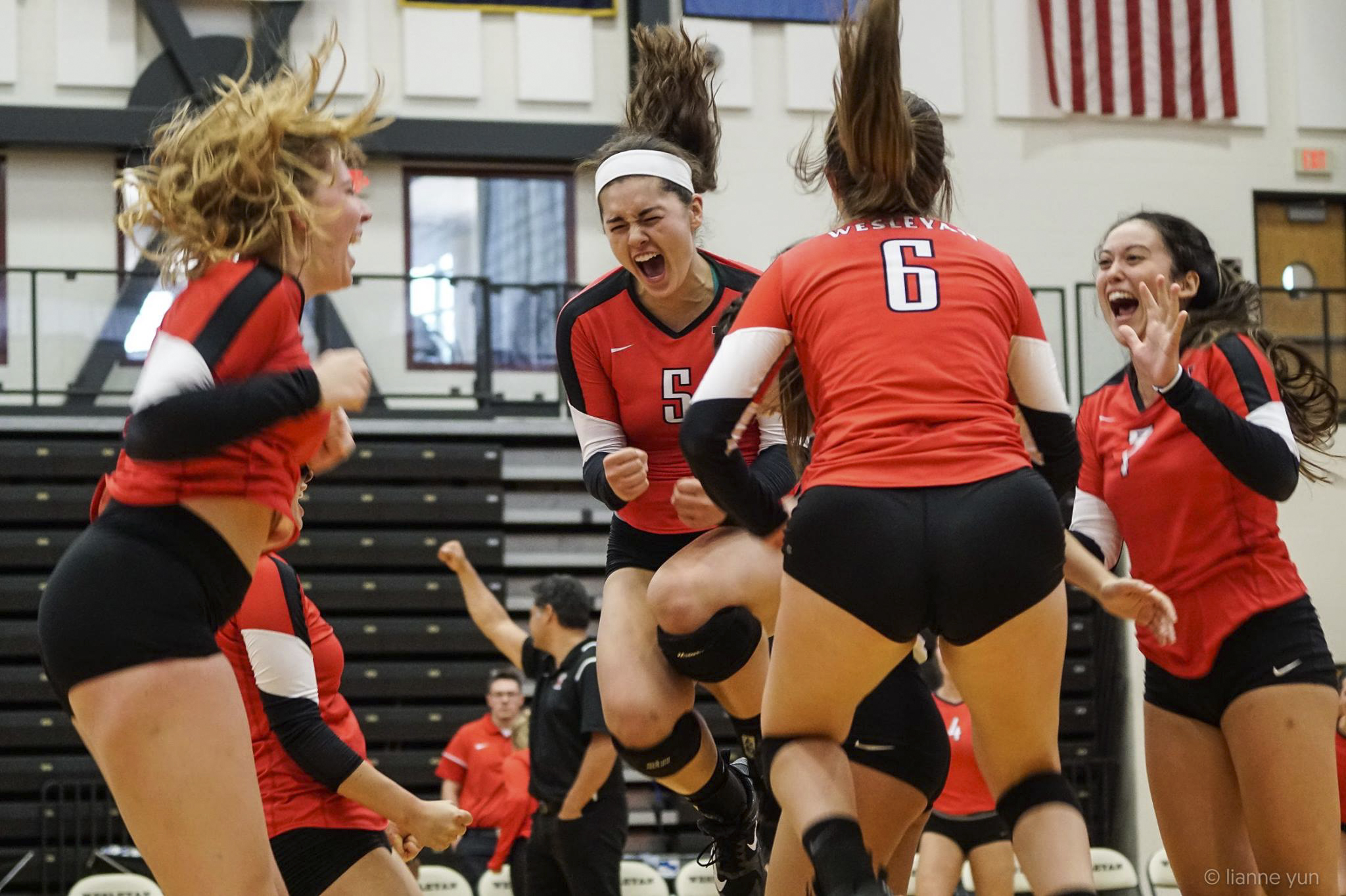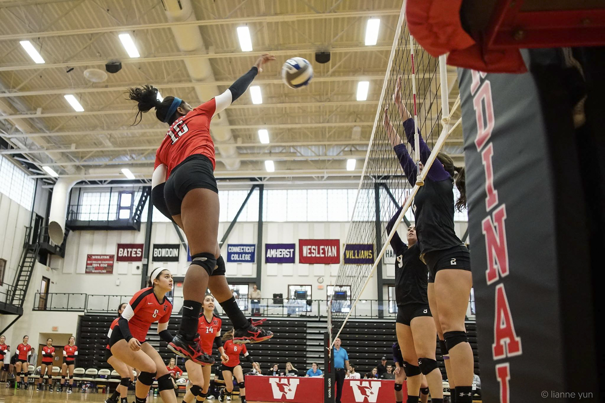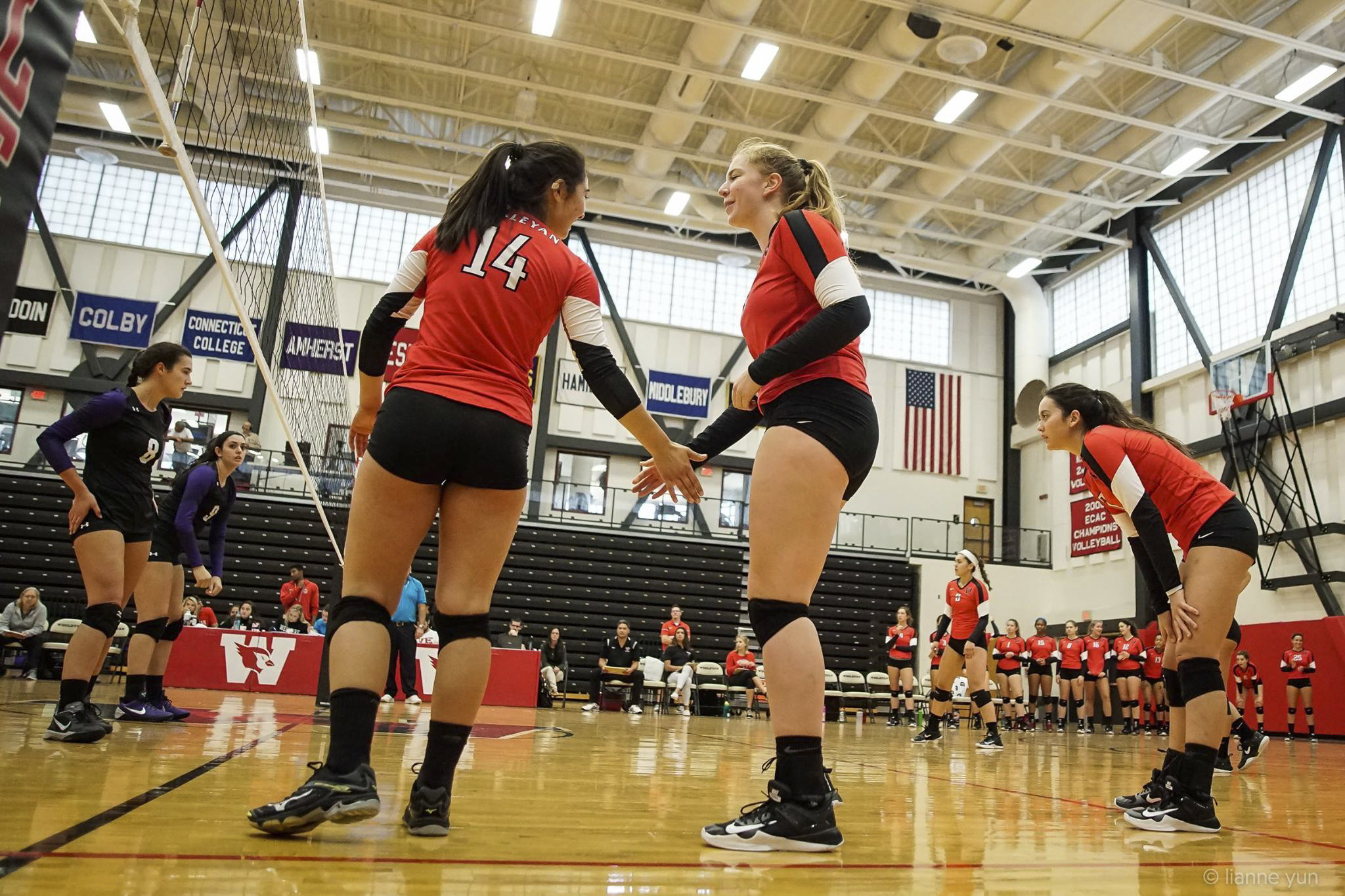 Your Wesleyan Cardinals are Little Three Champions! The women’s volleyball team did what they do best this weekend, beating the Amherst Mammoths three sets to none to clinch a long overdue title that ended a nearly 25 year drought. The early morning start didn’t seem to faze the team as much as it did their fan section — the players showed energy from the start, while pre-caffeinated students had a hard time showing the same liveliness. Yet when Gabby Bennett ’20 opened up the first set with a powerful kill, giving Wes the first point of the match, the spectators were able to muster a few strong cheers as they prepared for a long day of barracking amid the action-packed volleyball.