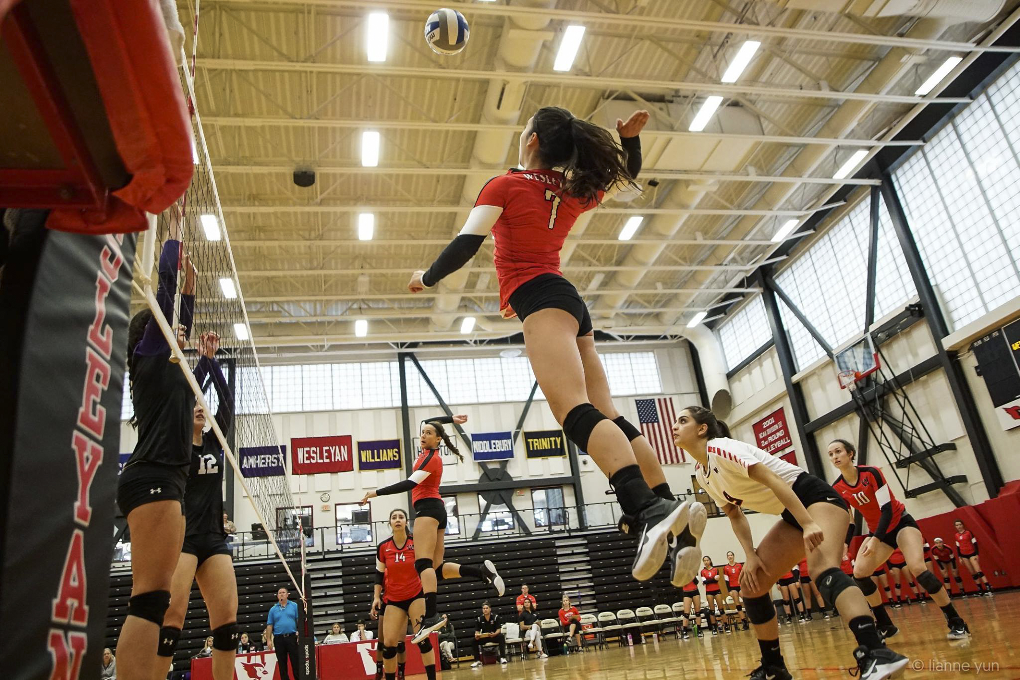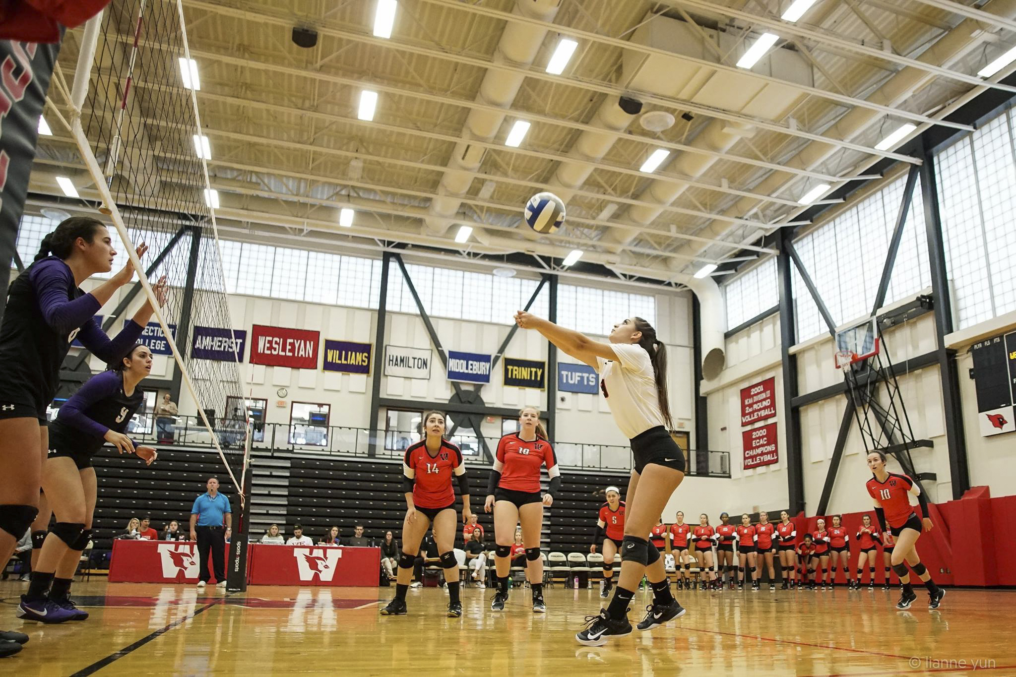 Wes scored first in the third set as well, this time taking the first five points, with Amherst only scoring on a blocking error. After a series of controversial calls from the referee, Amherst began to show signs of life, coming back to only be down 6-5. The points went back and forth, and Amherst was eventually able to tie the score at 10. Then, an Amherst blocking error gave Wesleyan the lead, and they never let it go.