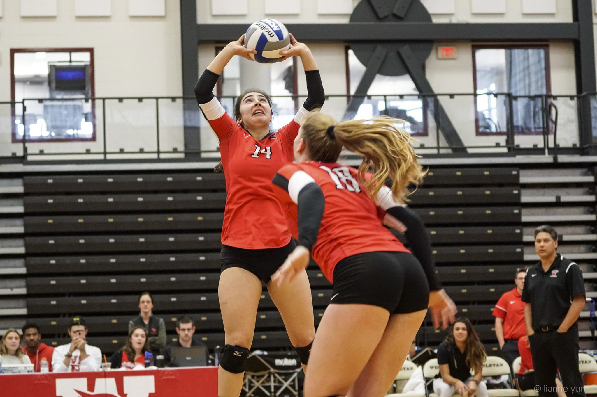 In the next set, the Red and Black continued to dominate. Bennett scored the first point again, and the Red Birds quickly took a 7-2 lead. Throughout the rest of the set, there were moments where Amherst hinted at a comeback but never succeeded, and Wes won the second 25-16.