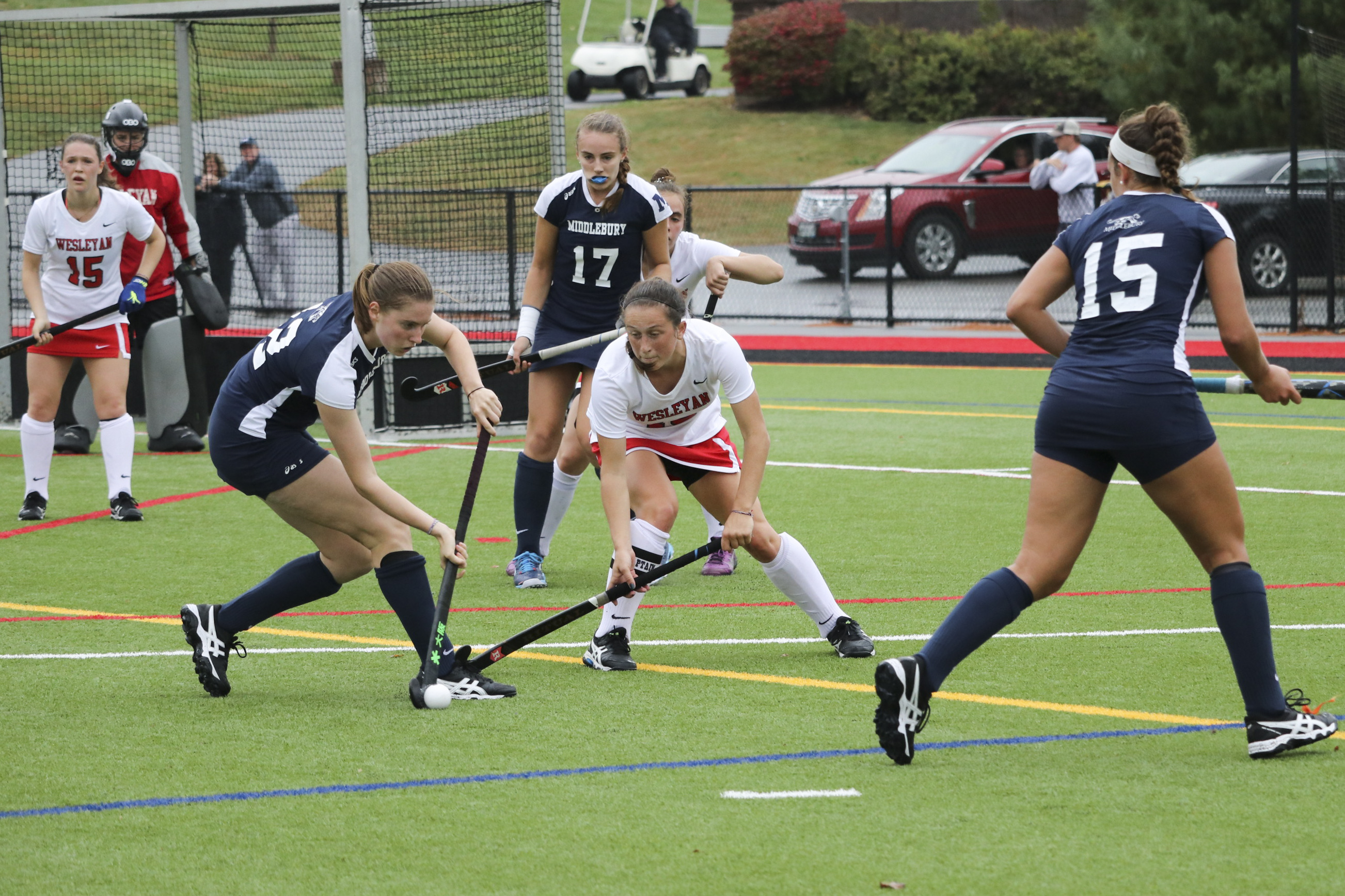 Before facing off against the Wheaton Thunder, the Cardinals took a trip all the way up to Clinton, N.Y. to take on Hamilton, ranked fifth in the NESCAC and ninth nationally. Wes fell behind quickly as the game began; the Continentals took control of the field and scored two goals in less than 15 minutes. One of the goals came from Hamilton’s Michaela Giuttari, the top scorer in the ’CAC this season with 15 goals thus far.
