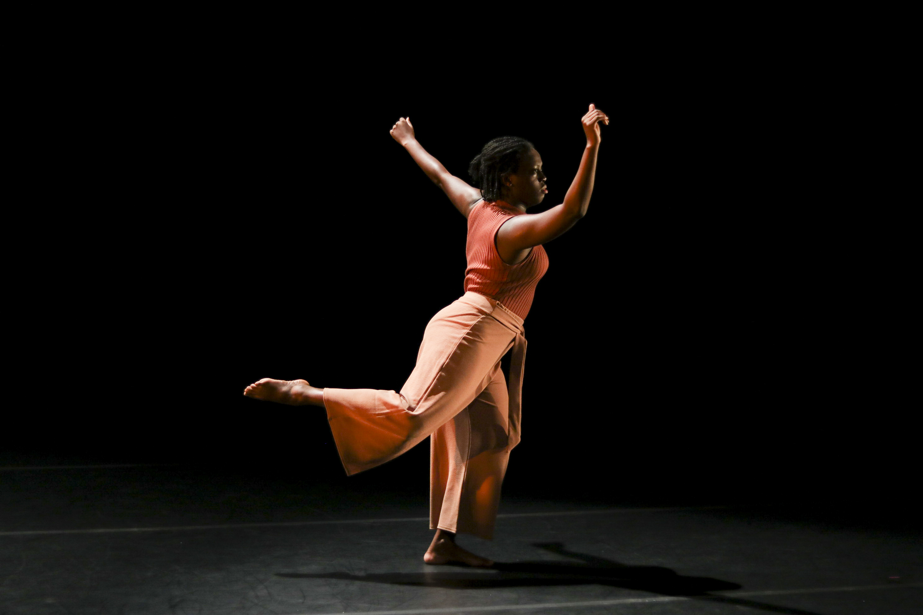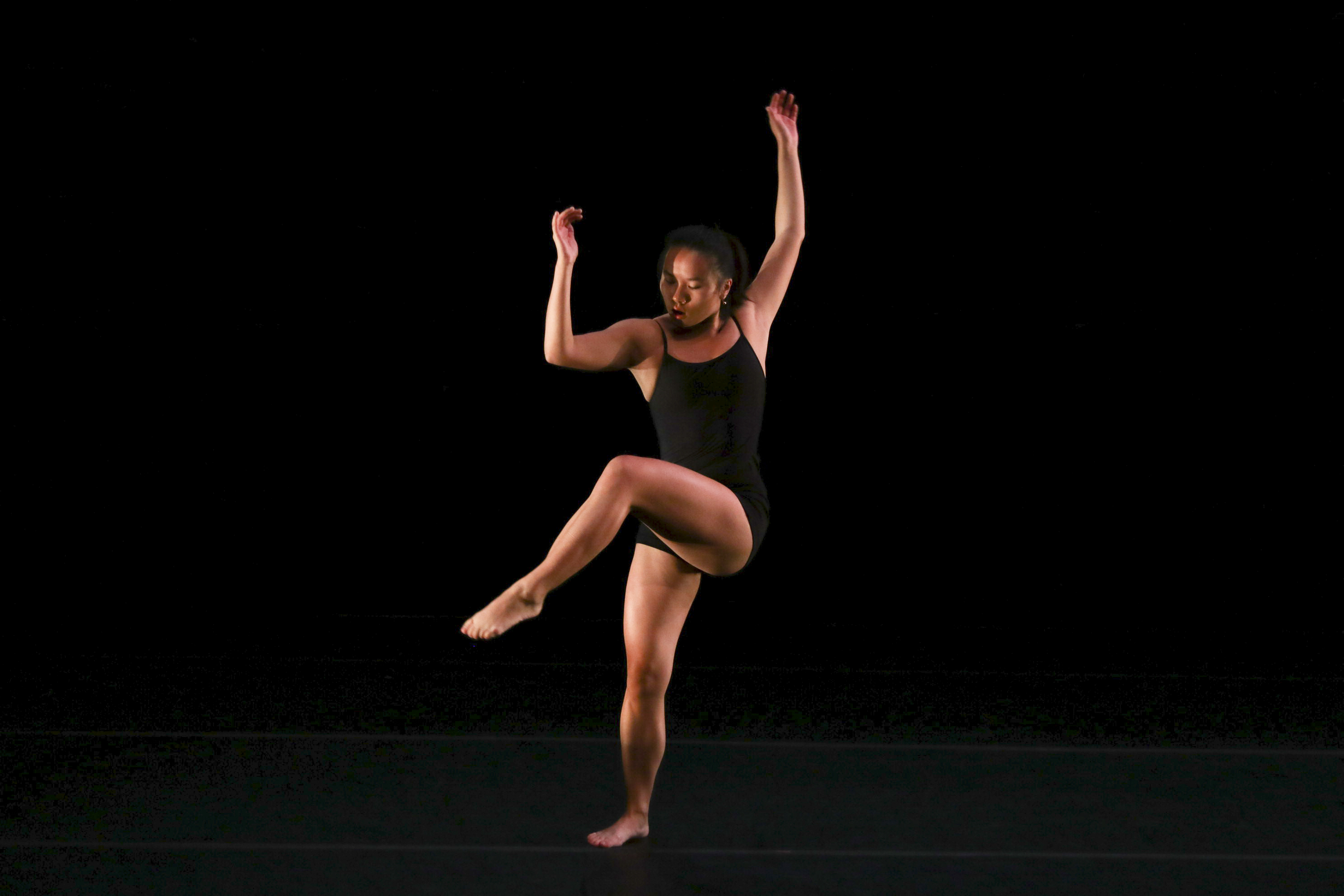 Shortly after 8 p.m., the lights dimmed down, illuminating a sparse stage with a bundle of spare shoes hanging by their laces from a black beam. The shoes, in conjunction with an urban backdrop, set the audience in a city atmosphere. Choreographed by Ottley, this opening piece, titled “Only We Know,” featured performers Makari Chung ’20 and SeArah Smith ’21.
