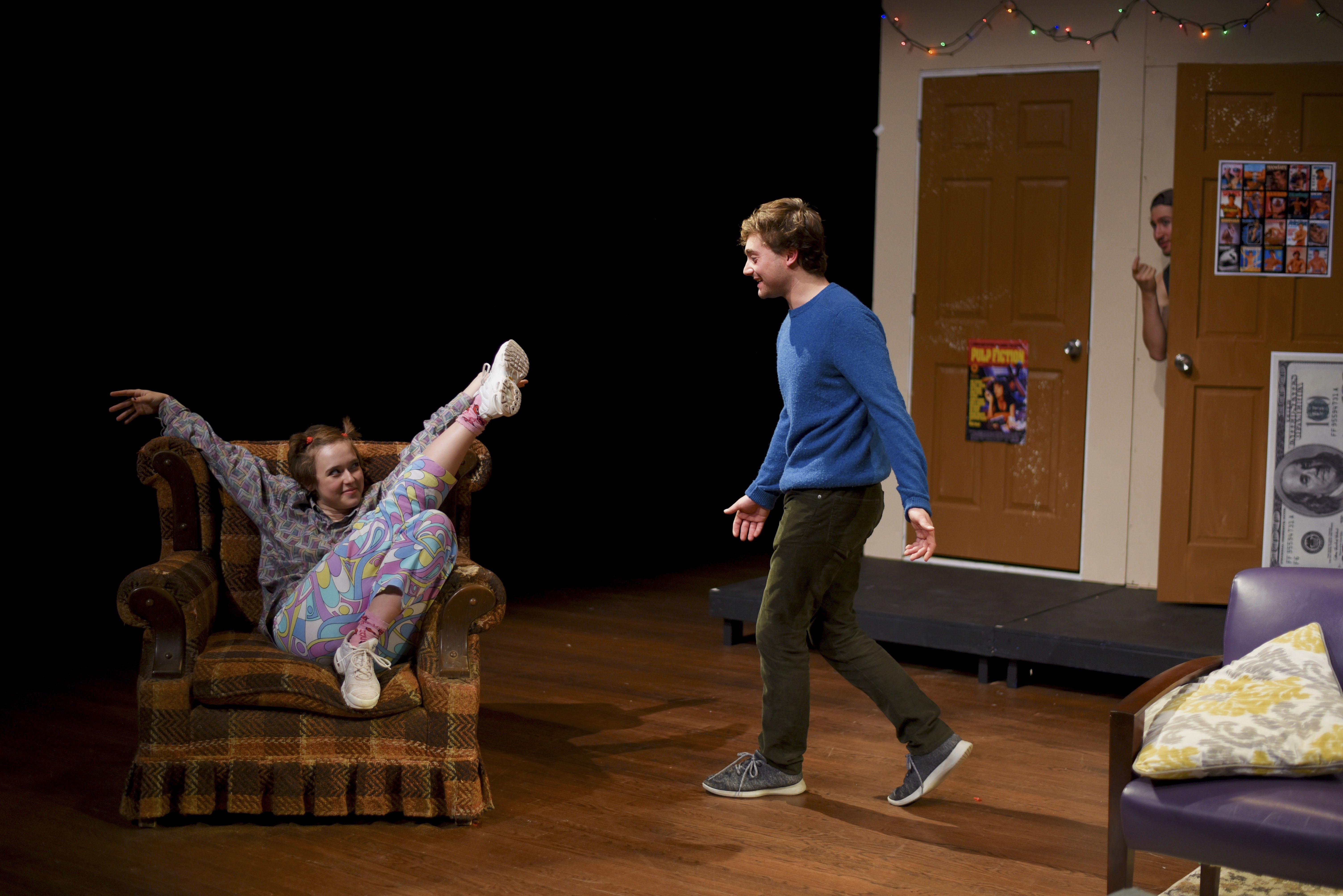 Kimberly Wipfler ’21 is somehow both lovable and evil as the troublemaker Laura, while Willis Weinstein ’20 plays Terry so convincingly he may even make you hate him—but you will love every minute of it. Gabe Leeman ’20, playing our poor Pete (and his own identical twin), delivers charming awkwardness on the level of Eric Forman. You will feel for him, but also revel in the brilliantly curated schadenfreude of his storyline. Avery Pedell ’21, who appeared just last week as sweet and shy Audrey in “Little Shop of Horrors” has skillfully transformed in this production into self-defined “loose-cannon” Kayla, who eats jerky and sends snapchats on the toilet. Meanwhile, Alex O’Shea ’19, fresh off a dramatic and tear-inducing role in “Stop Kiss” earlier this semester, plays a raucously funny, off-her-rocker, mother, demonstrating jaw-dropping theatrical range. She is matched by her stage husband, Miles Brooks ’20, whose spot-on comedic timing will certainly get chuckles out of you. This cast of actors is a veritable tidal wave of top-notch comedy not worth missing.