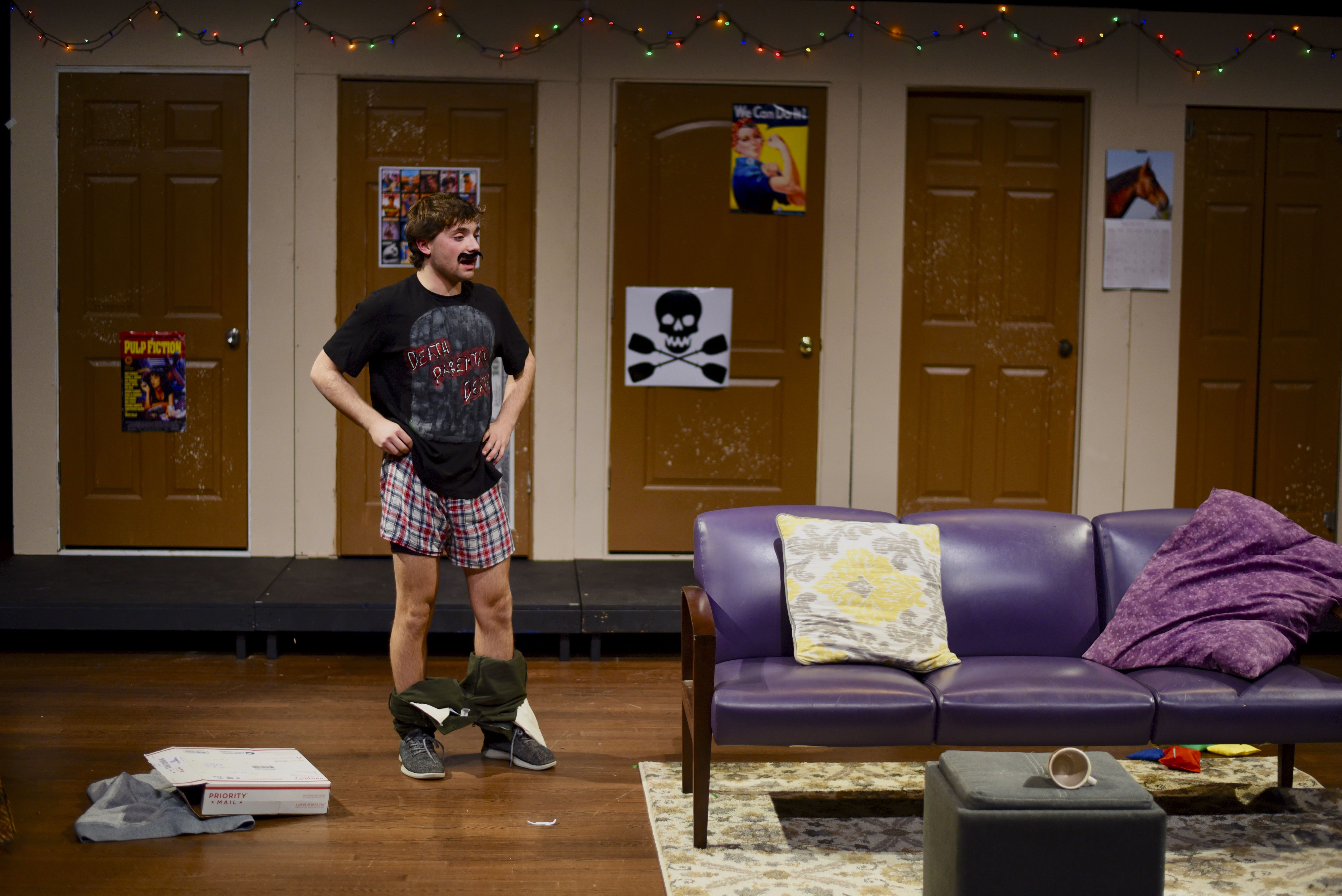 The fabulous comedy is punctuated by the hard work of the phenomenal crew. Everything down to the set of horse calendars and Rosie the Riveter posters encapsulates the spirit of the college student lodging, in addition to expertly navigating the challenges of a heavily door-based set. The soundboard adds an extra layer of humor, emitting everything from angelic choirs to the Seinfeld theme.