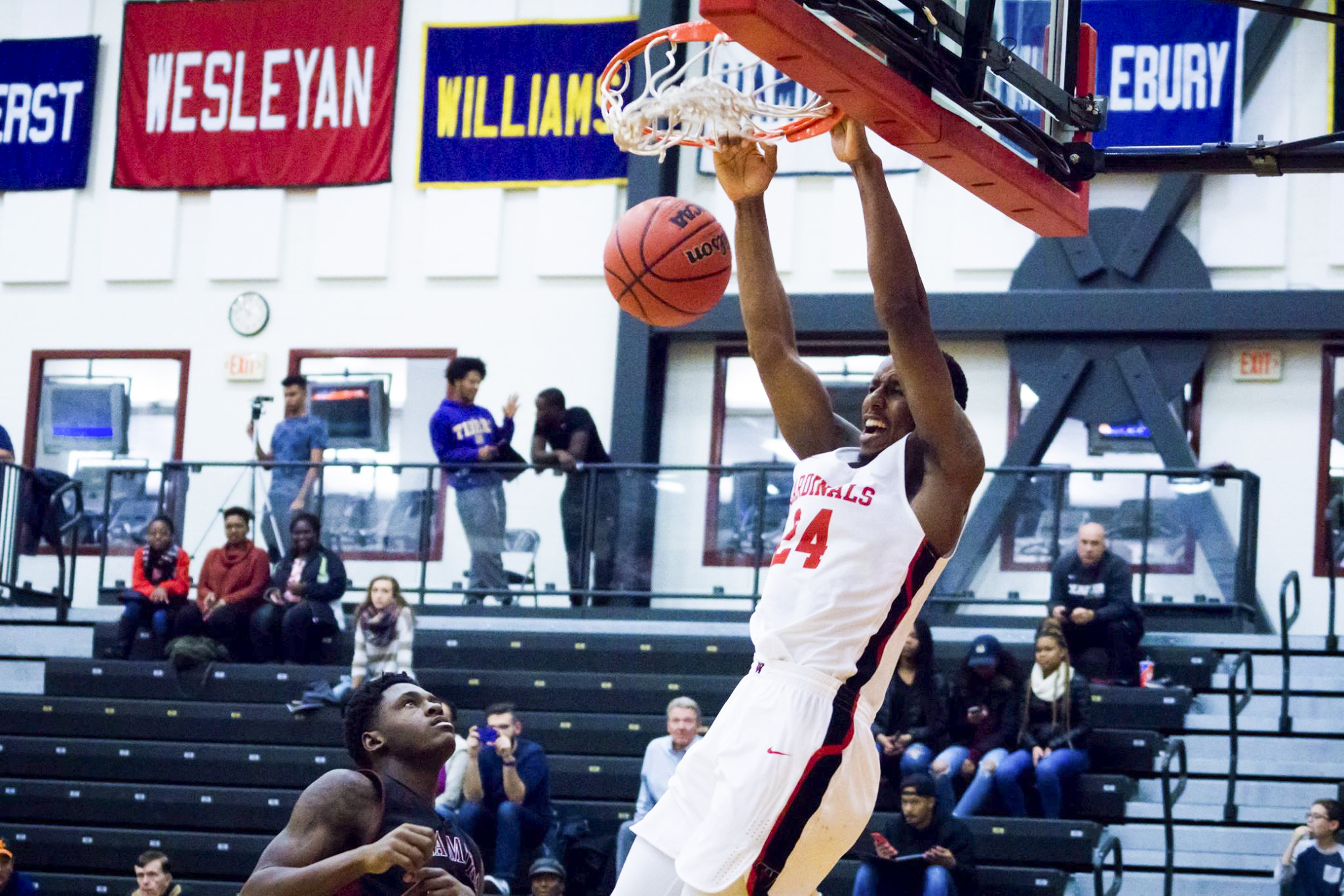 The Wesleyan men’s basketball team is off to a dominant start this season after resoundingly defeating their first four opponents by an average of 28 points per game. Taking care of business at home during the Herb Kenny Tip-Off Tournament, the Cards defeated Anna Maria College in the first game 74-61 and Mitchell College in the finals, 107-64. While their offense fluctuated in fits and starts in the first two games, their solid defense remained a bedrock throughout the Tournament.