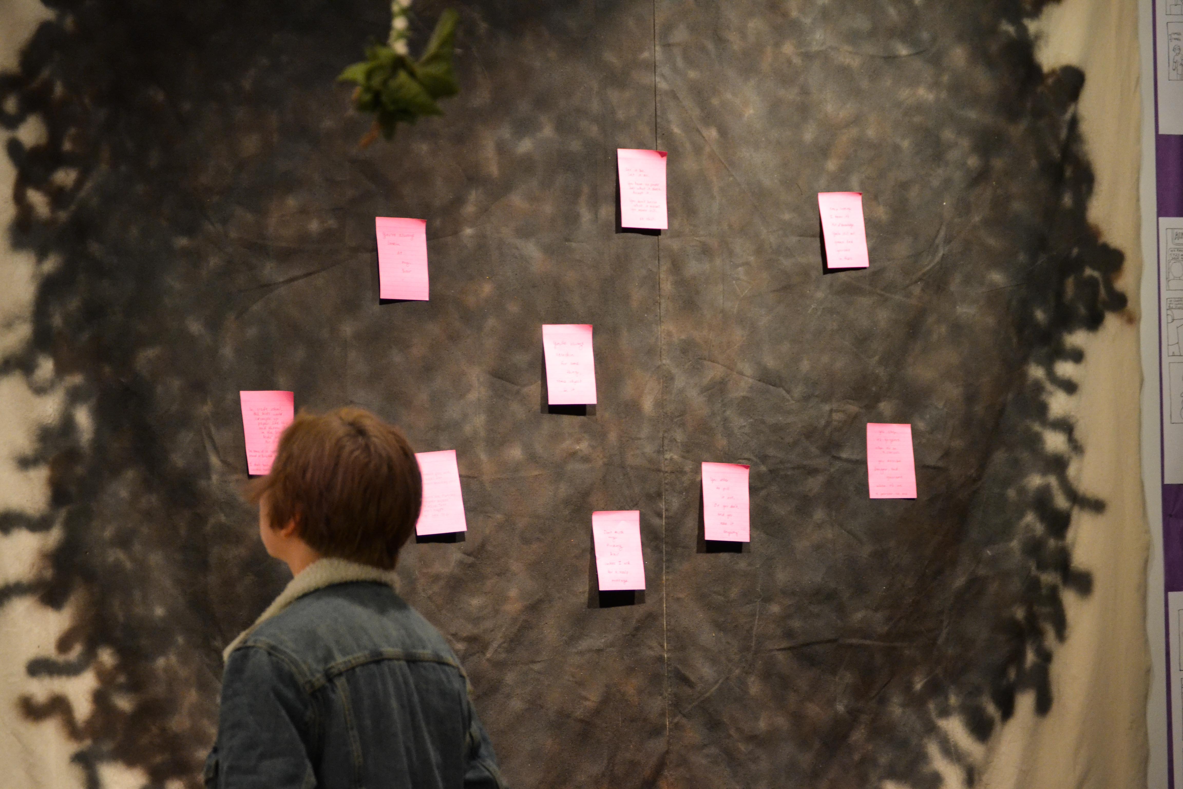 “I think a big part of diverting these conversations about what Black death is and subverting that gaze is just seeing that death is not the end of anything,” said Ainsley Eakins ’18, introducing the exhibition to visitors. “No matter how much struggle that we’re put through it’s just not the end and that’s not how life works.”