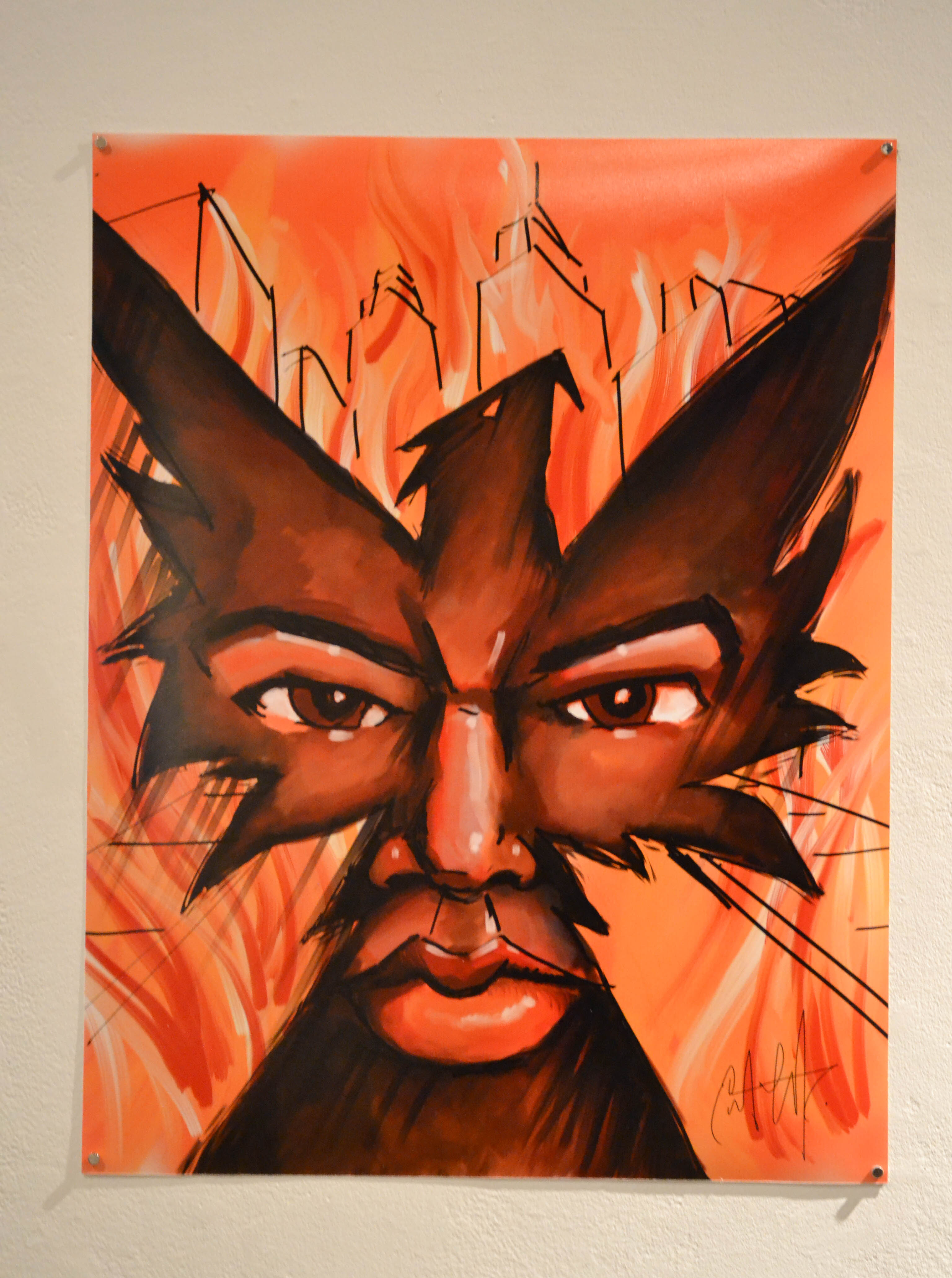 Eakins also discussed the collaborative nature of the exhibition. The people behind the exhibition refer to themselves as the Black Phoenix Rising Collective, and none of the works are credited to a specific student.