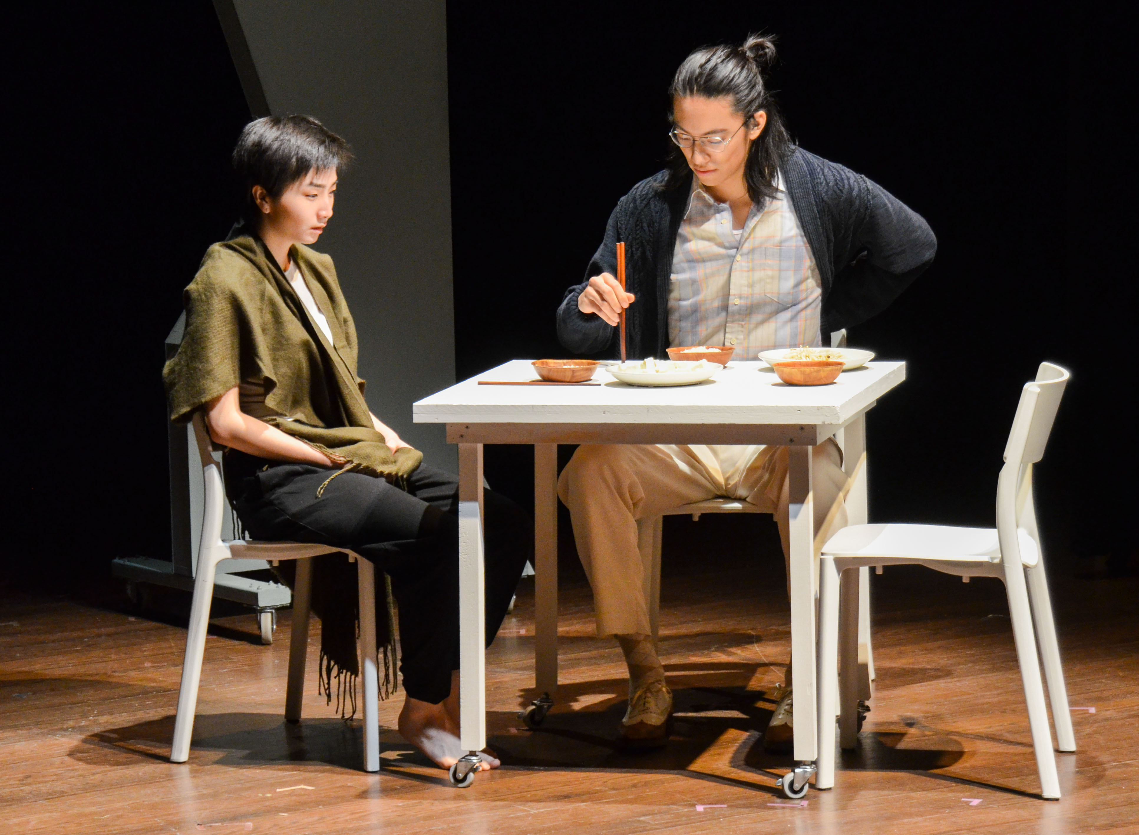 Eunice’s relationship with history and, consequently, memory, is both necessary and debilitating—in a moment of insight, she realizes that as a musician, her memory is ingrained in her body as much as it is in her mind. Yet that unshakable memory is painful and taxing. Sah-Jin was once a musician too, and despite her verbal denouncement of the past, we see her making conscious efforts to retain what once was, listening to Eunice’s old recordings and filing away reminders of her childhood in her hope chest. The very nature of said chest betrays Sah-Jin’s true feelings. Over the course of the play, Eunice’s identity becomes codependent with those of whom she loves: her mother, her unborn child, even her aunt. She complicates the idea that identity is predicated on individual eminence, finding meaning in her body as a vessel for new life and as an heir to a maternal legacy. Before, the duality of her self was like a transform fault, two plates tearing in opposite directions; but Eunice is neither the ambitious cellist of yesteryear nor is she the contrarian nomad she appears to have become. Thus, rather than look inward, Eunice turns to her family. Nearing the play’s conclusion, Sah-Jin confides in Eunice, “You are my great love because you are me.” Lou, Yang, and Chan combine to create this moving thematic intersection in which histories converge. “Chung” is made visible, and family endowment comes full circle.