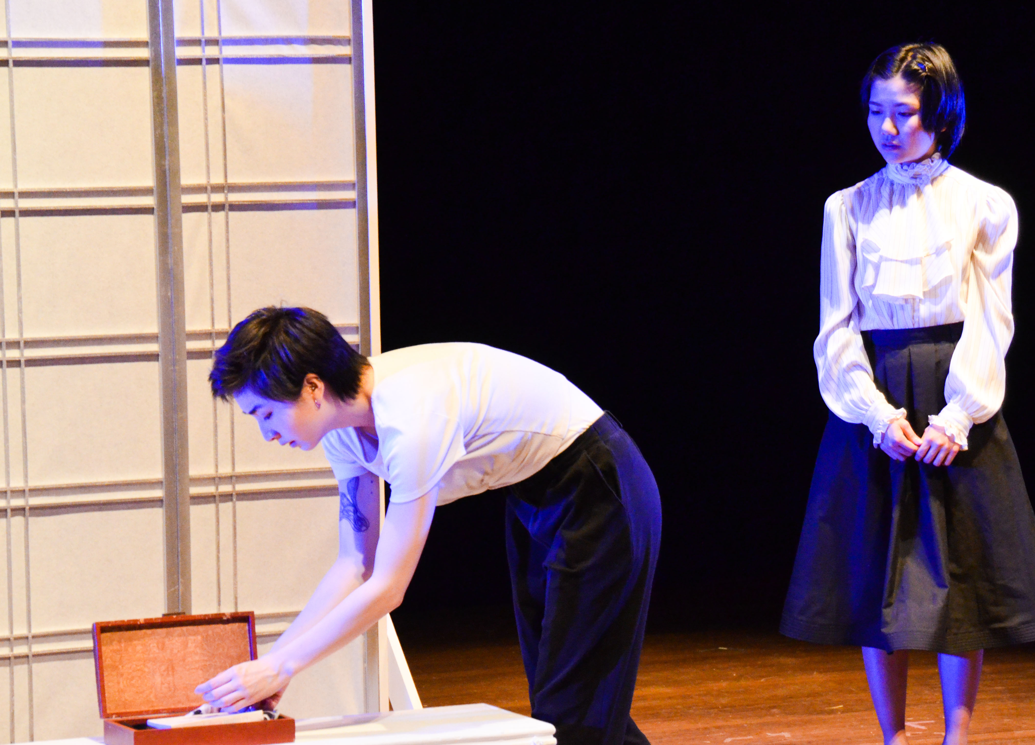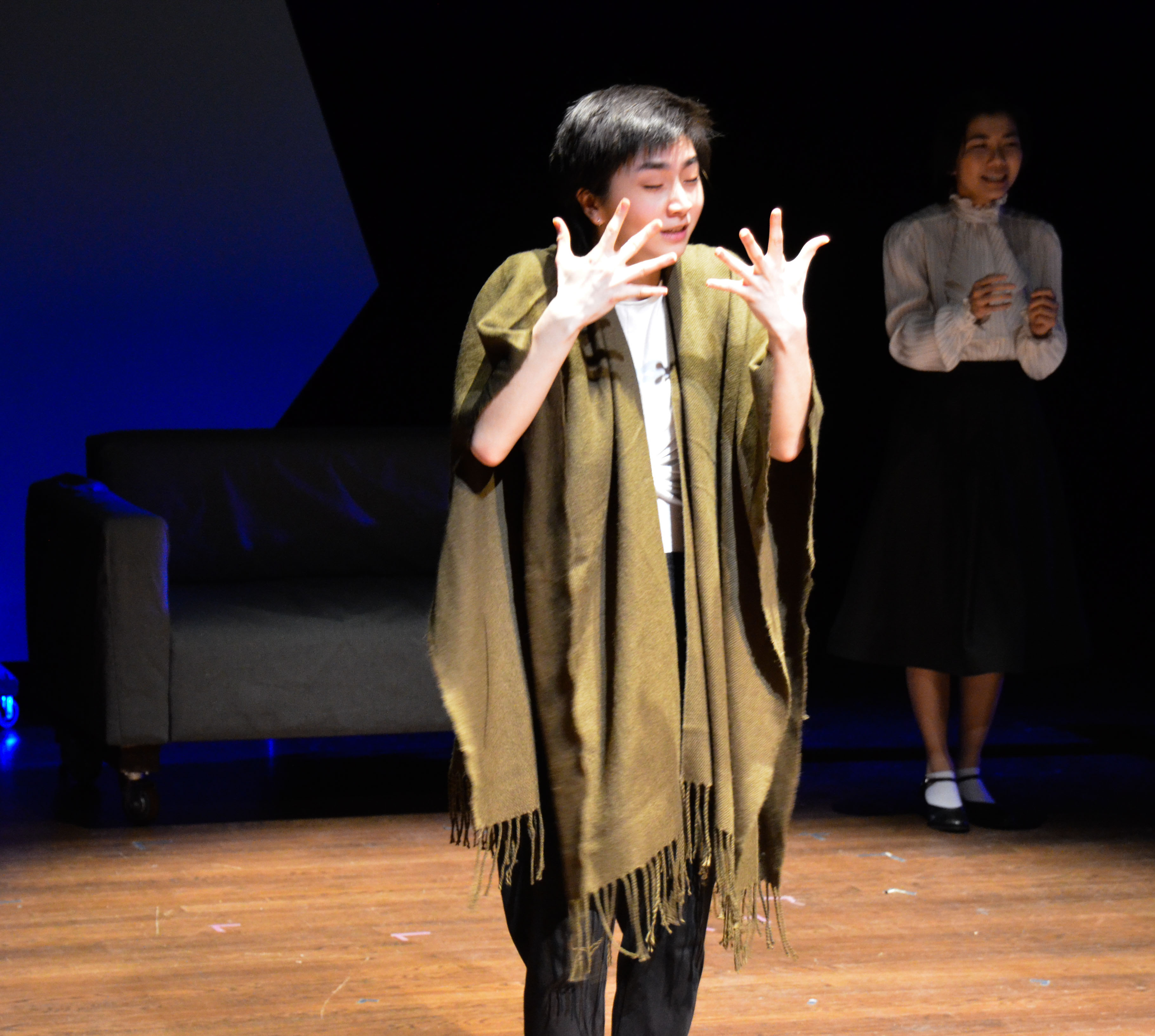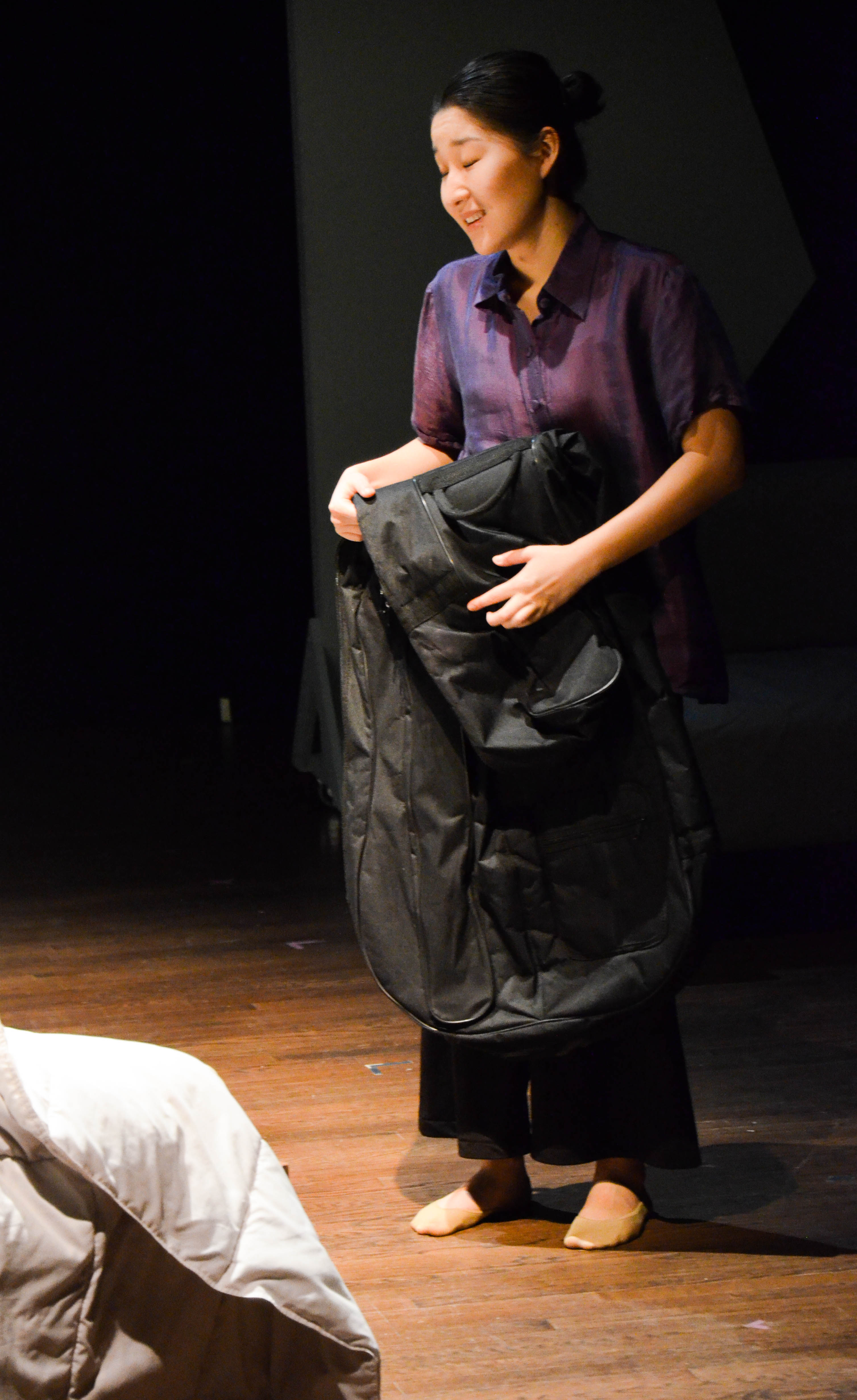 When she finds a chest full of her mother’s keepsakes along with her old cello, the bracing traditional narrative structure comes crashing down as Eunice is assaulted and overcome by memories that are not entirely her own. In the chest are pictures of a woman who looks just like Sah-Jin and a book bearing the signature of a mysterious Daniel (also played by Dalton). Although Sah-Jin initially dances around the truth, we learn that the woman in the photograph is none other than Sah-Jin’s sister (Fiona Sun ’20); Daniel is a former love interest, and we also meet a younger Sah-Jin (Sige Zheng ’20). Eunice explores this lost (but not forgotten) history not as an outsider looking in, but from within as though she were truly there.