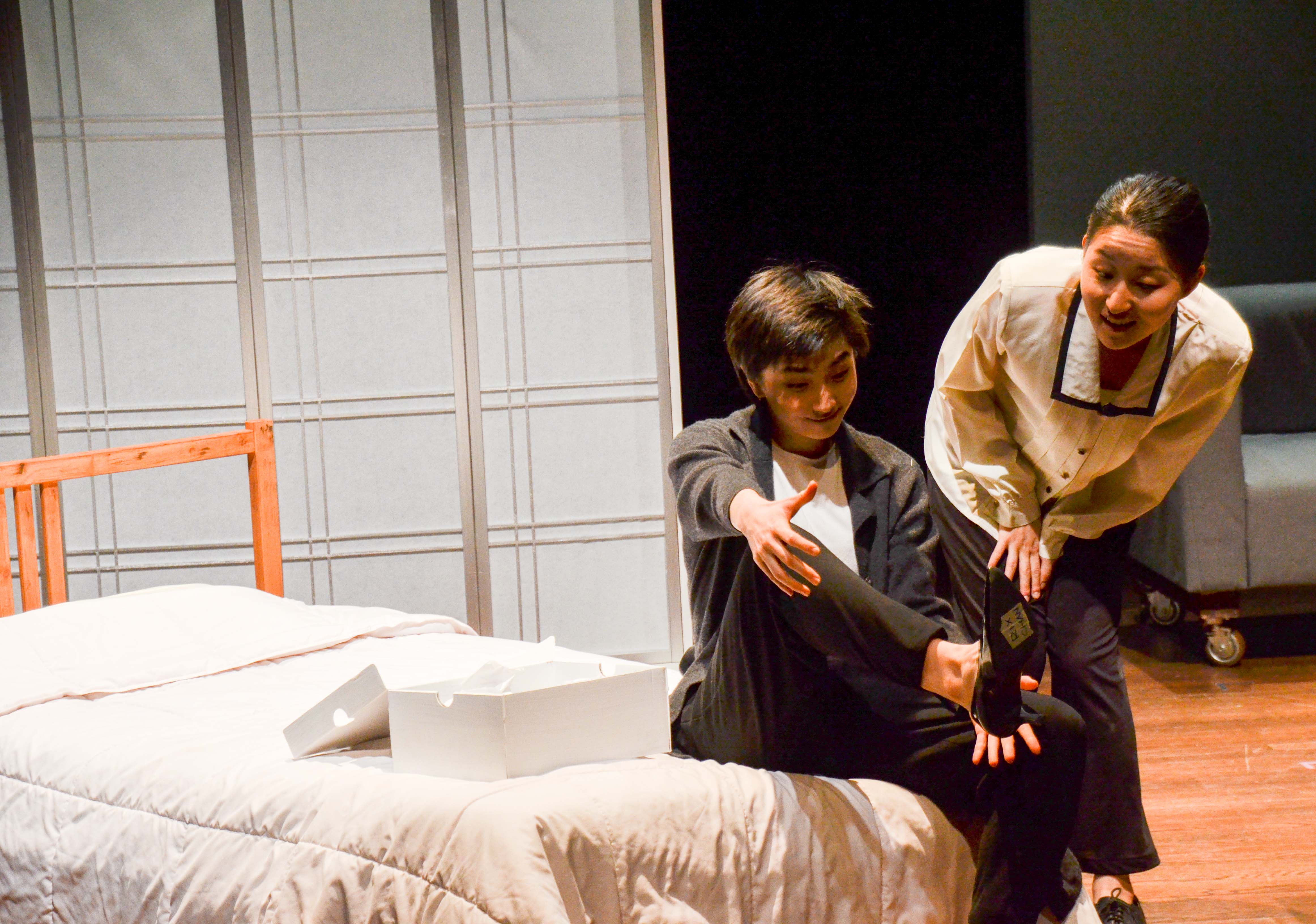 One of the most poignant moments in the play comes in a sequence in which Sah-Jin and Eunice are discussing the latter’s inheritance; Eunice is generally reserved and sarcastic—locked in a state of constant withdrawal like Russia during the French invasion, according to her ex, Joe. But in this moment, Eunice is dramatic; she is selfish, enigmatic, and honest all at once. When Sah-Jin reveals that the same disease Eunice has once plagued her sister, Eunice begins to lament the nature of her inheritance, wailing that her ‘heirloom’ consists not of beauty or wealth, but disease. Chan and Yang deliver a compelling take on the mother-daughter dynamic; the former’s distress is palpable, particularly when interspersed with the crooning of the cellist (Aïli Niimura ’19), while the latter’s muted maternal affection is extremely convincing.