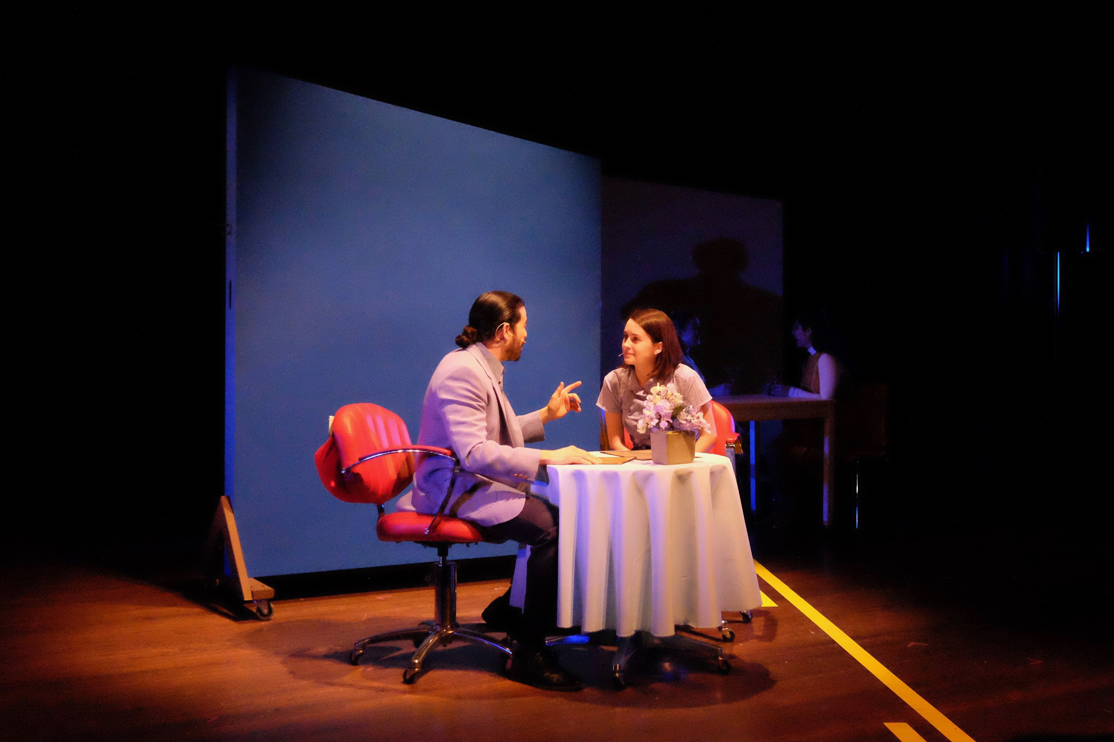 It is through these actors that we get the true pathos of Vogel’s script. Uncle Peck does not fit the typical trope of an abuser. He is not overtly violent, and at times he tells Li’l Bit he will not do anything without her permission. He does not drink during the period of abuse. His character, as well as Rodriguez’s performance, at times, almost makes us, the audience, forget that he is an abuser, to say nothing of Li’l Bit, the girl he has been grooming for sex since childhood. It is this that makes his abuse so upsetting. He is able to get away with it because he wins over or convinces anyone who might stop him. His wife, Li’l Bit’s Aunt Mary—played by Kashani-Sabet—addresses the audience directly in a particularly instructive monologue, admitting knowledge of his actions, excusing and sympathizing with him, and, as is so upsettingly familiar, blaming Li’l Bit.