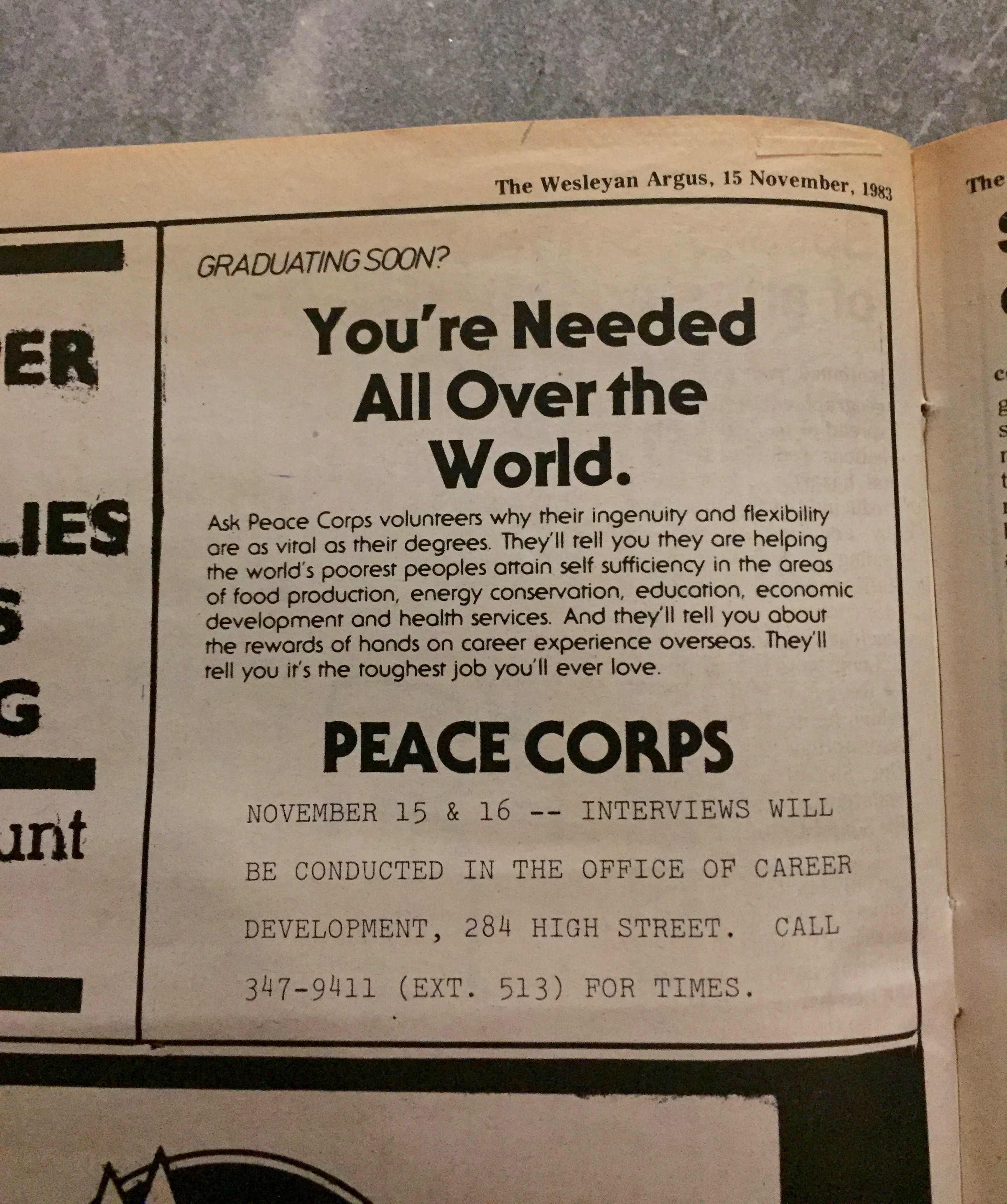 Over the years, the ads’ target audience has changed with the student body’s makeup. Ads for soldiers were commonplace in the early ’40s, and advertisers took aim at women when they rejoined the student body in 1969—including one bold ad four years after Roe v. Wade (1973) that appeals to those looking to terminate their pregnancies.