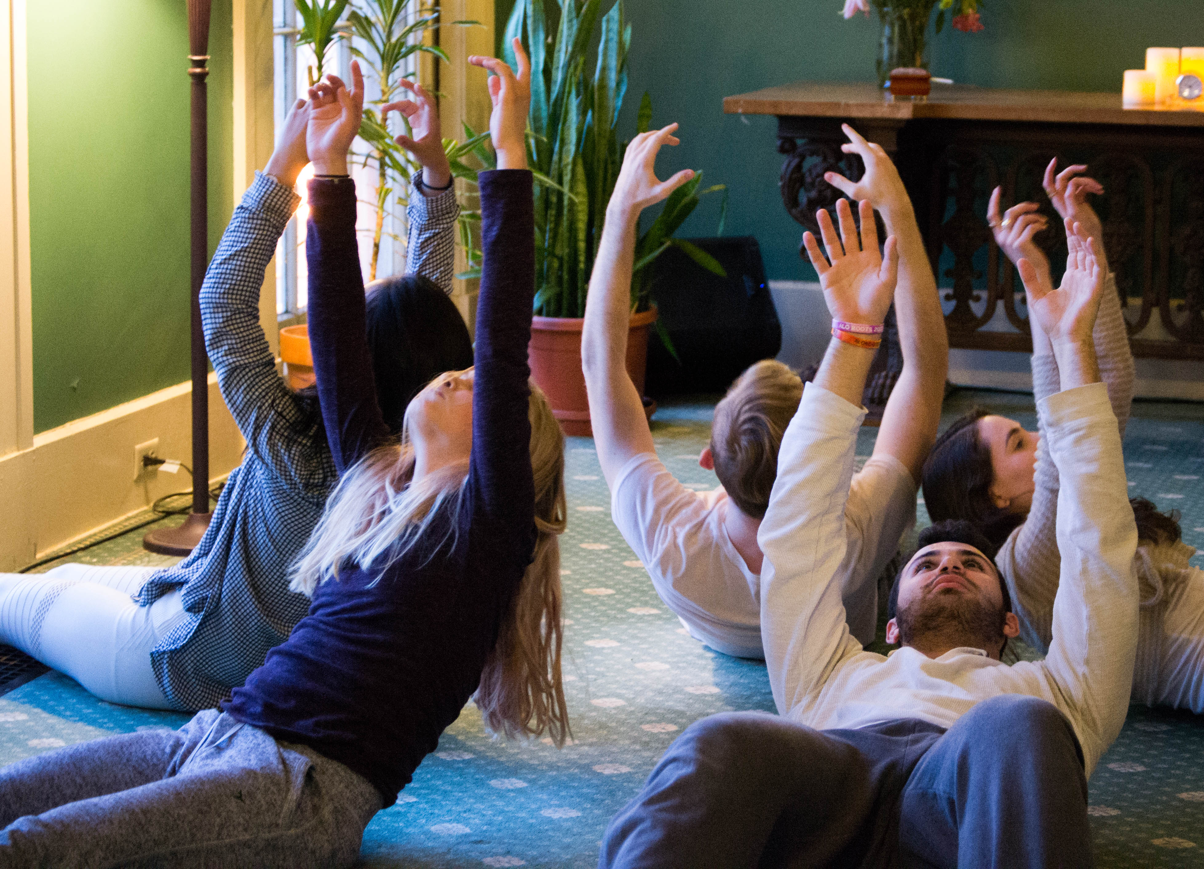 Upon walking through the foyer and into the performance space, viewers are greeted by a group of dancers sitting on the main staircase, who soon spread out throughout the rooms of the house. Audience members are free to wander throughout the building, following the path of a specific dancer or exploring rooms at random. “The Home Project” takes place in Russell House, which was built in 1828 for local businessman Samuel Russell and is now home to the University’s philosophy department. This setting is a vital part of the show, as the use of an actual house gives the performance a sense of authenticity.