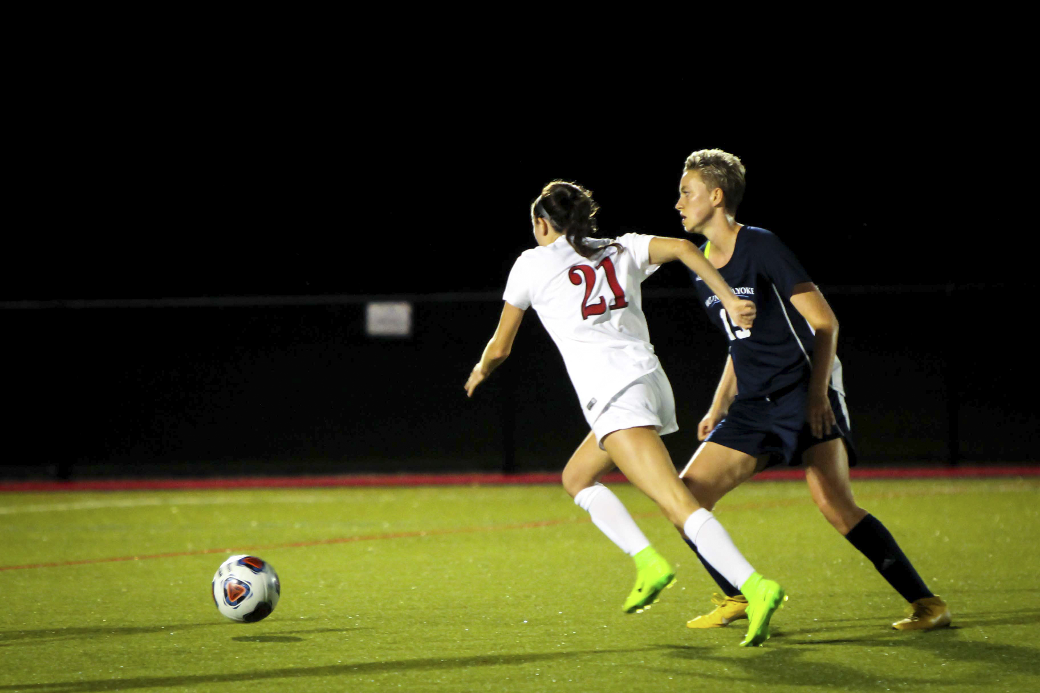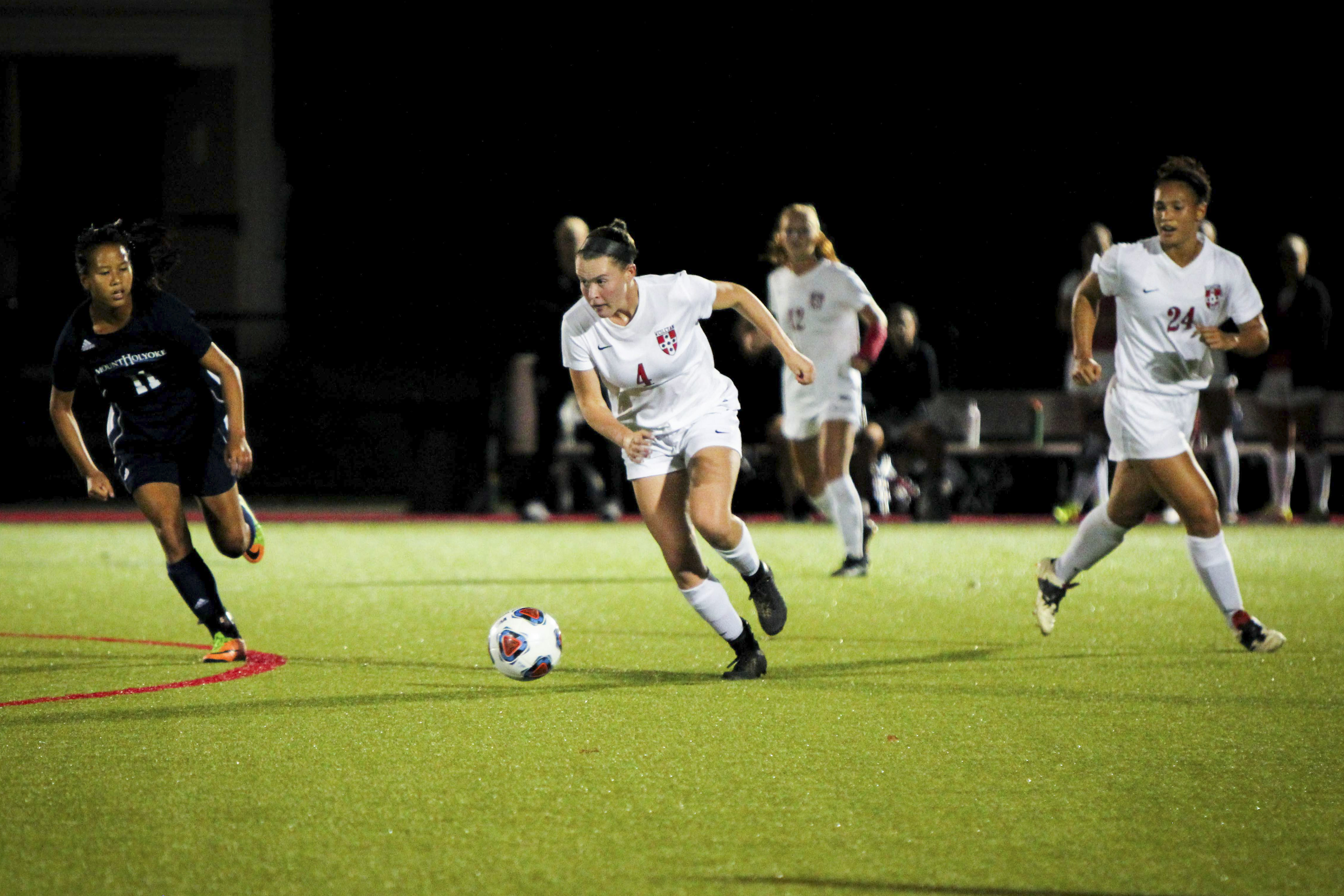 The streak is on! This Wednesday, women’s soccer was able to follow up on their dominant win against Bowdoin last Saturday with a spectacular 5-0 victory against Mount Holyoke College (2-4-0) on Wednesday at Jackson Field. The Cardinals now stand with a 4-2-0 record heading into an important conference matchup against Bates this Saturday.