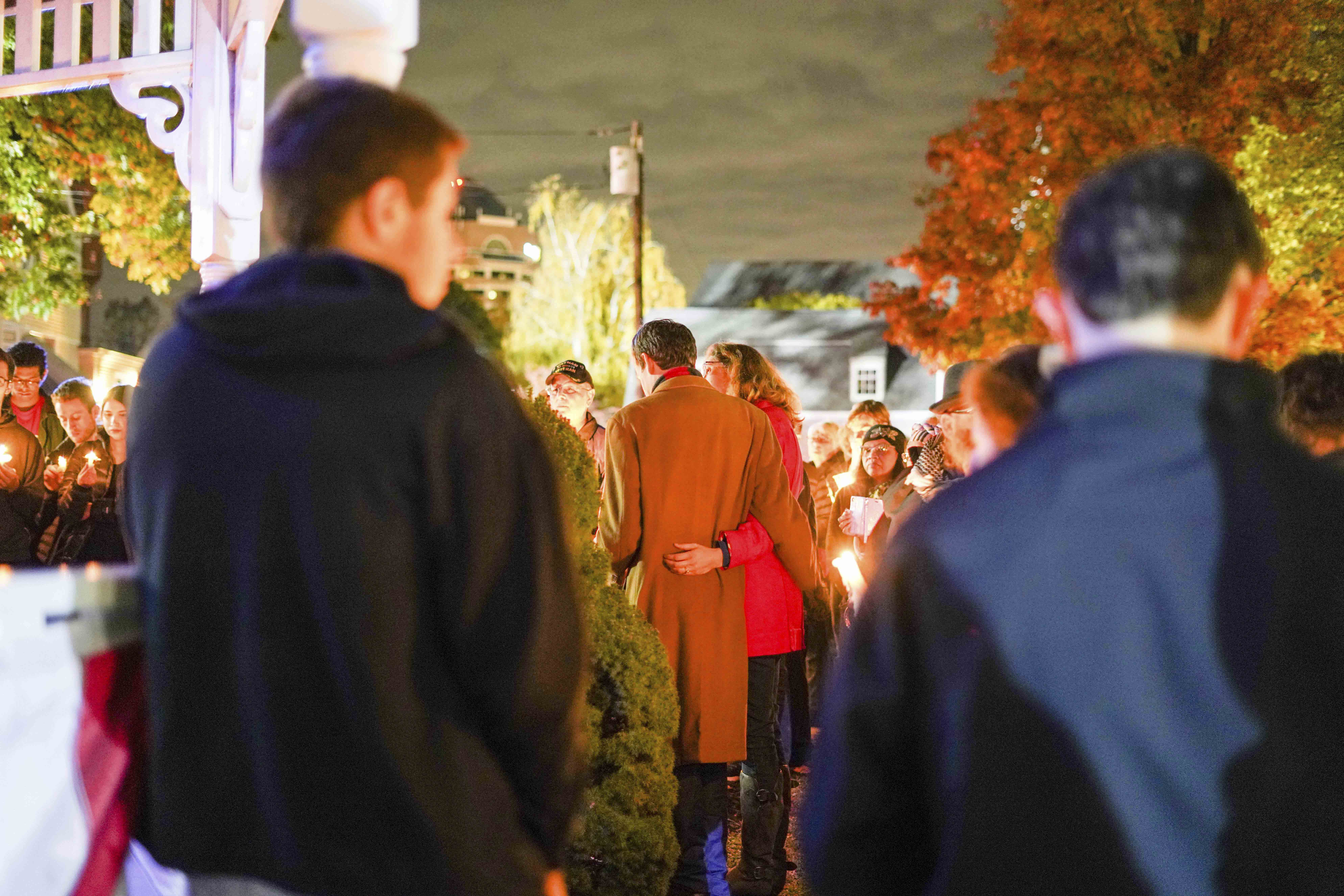 On Sunday evening, a crowd of Middletown residents and Wesleyan community members gathered on South Green to remember the 11 victims who were killed in a shooting at the Tree of Life Synagogue in Pittsburgh on Saturday morning. Organized by Temple Adath Israel and publicized to Wesleyan students in emails sent by University Jewish Chaplain Rabbi David Teva and President Michael Roth, the vigil provided a space for members of the Middletown community to stand against anti-Semitism and mass violence.