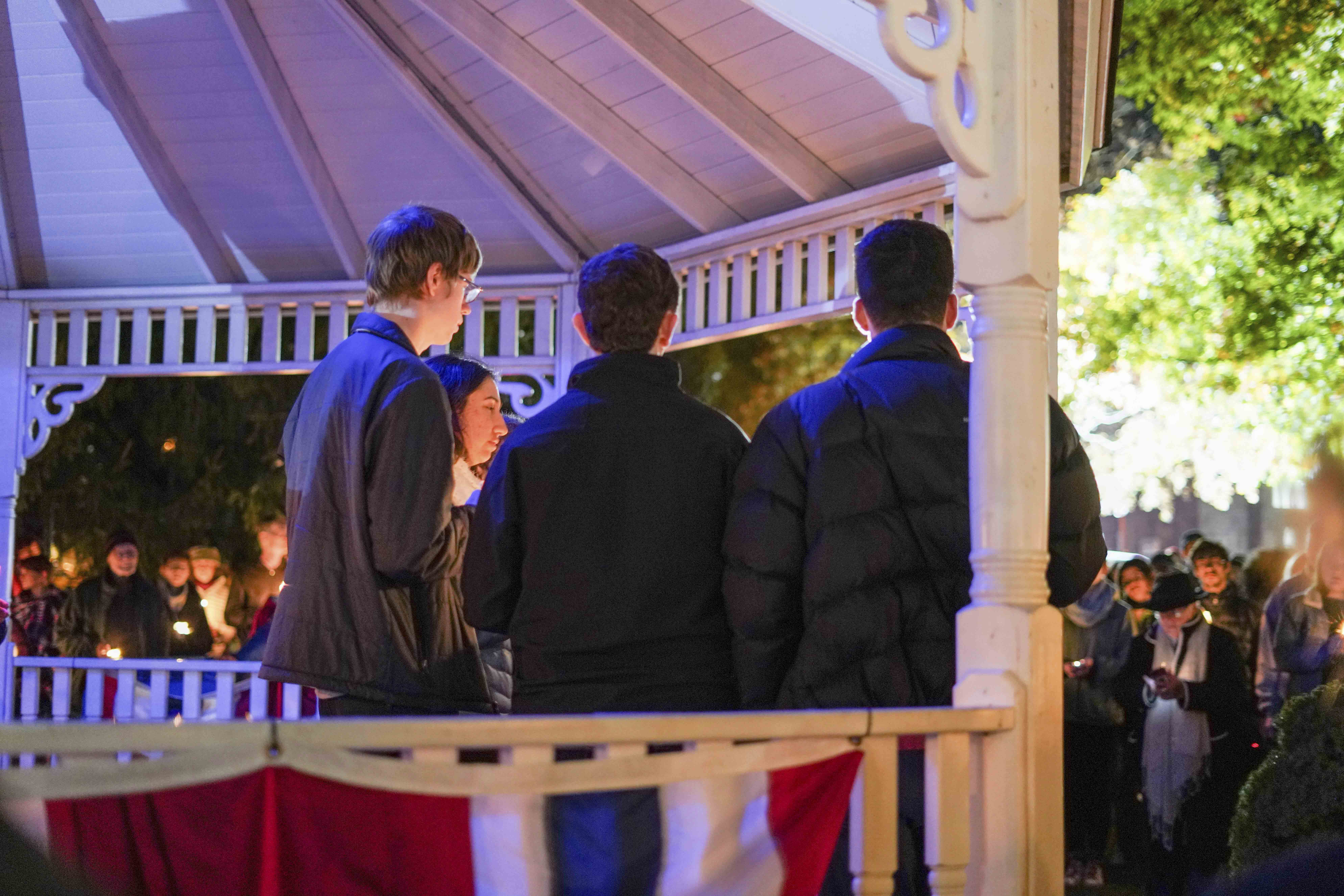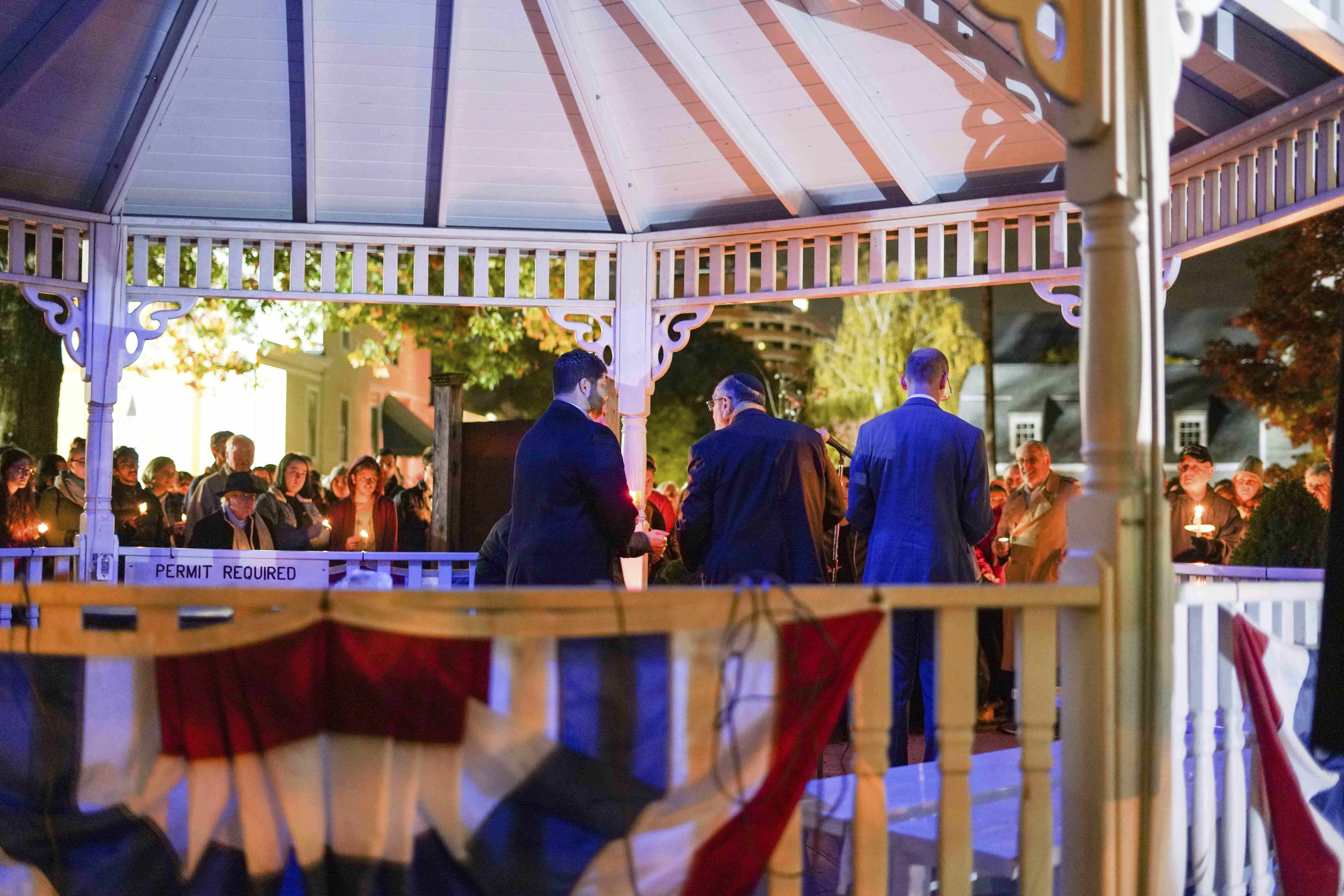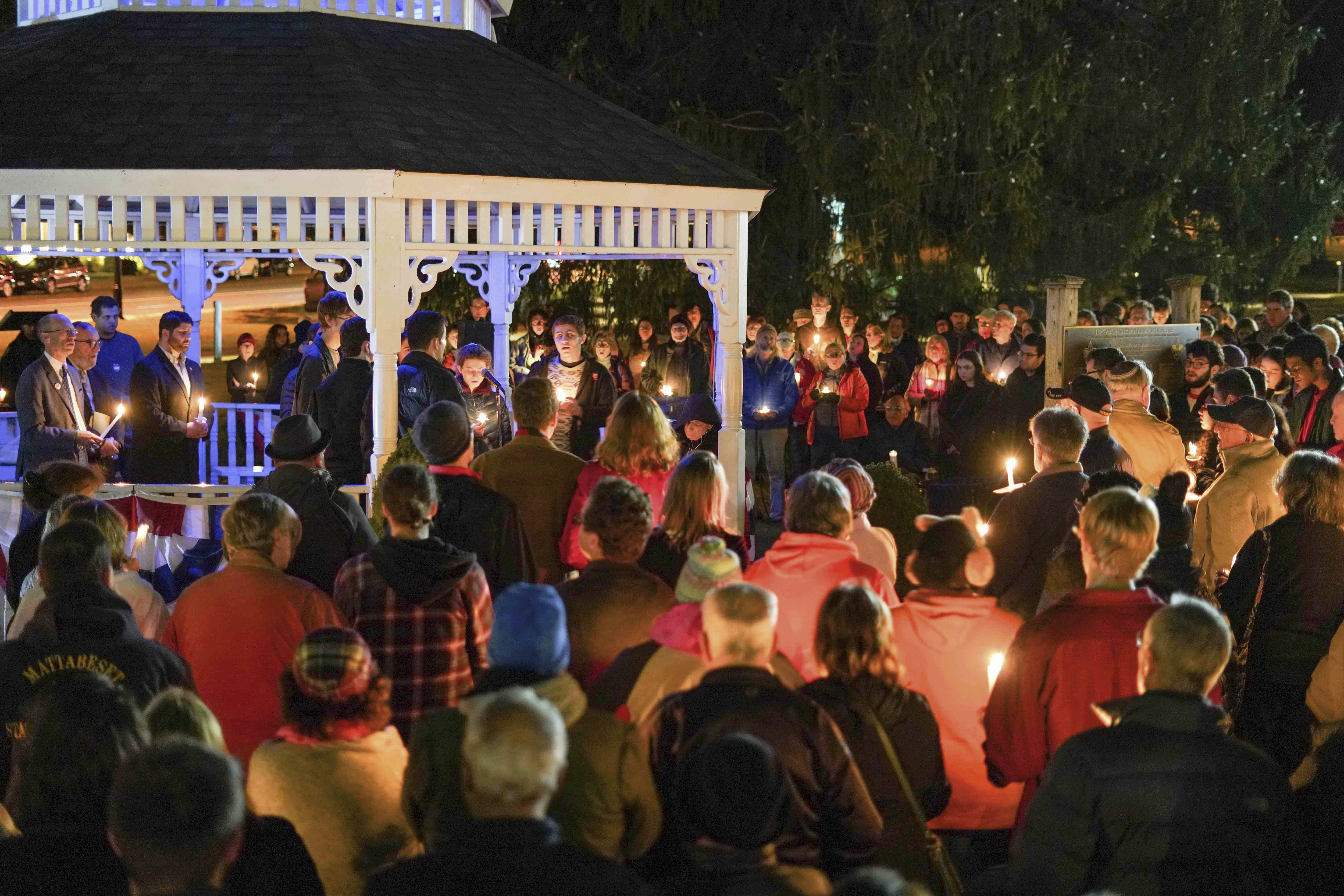 Attendees lit candles, sang Hebrew songs, and listened to Wesleyan’s Mazel Tones a capella group perform two pieces. Adath Israel Interim Rabbi Marshal Press and Sarah Steinfeld, wife of state Representative and state Senate candidate Matt Lesser, also spoke. Steinfeld, a Pittsburgh native, grew up four blocks from where the Tree of Life Synagogue now stands in the city’s predominantly Jewish Squirrel Hill neighborhood.