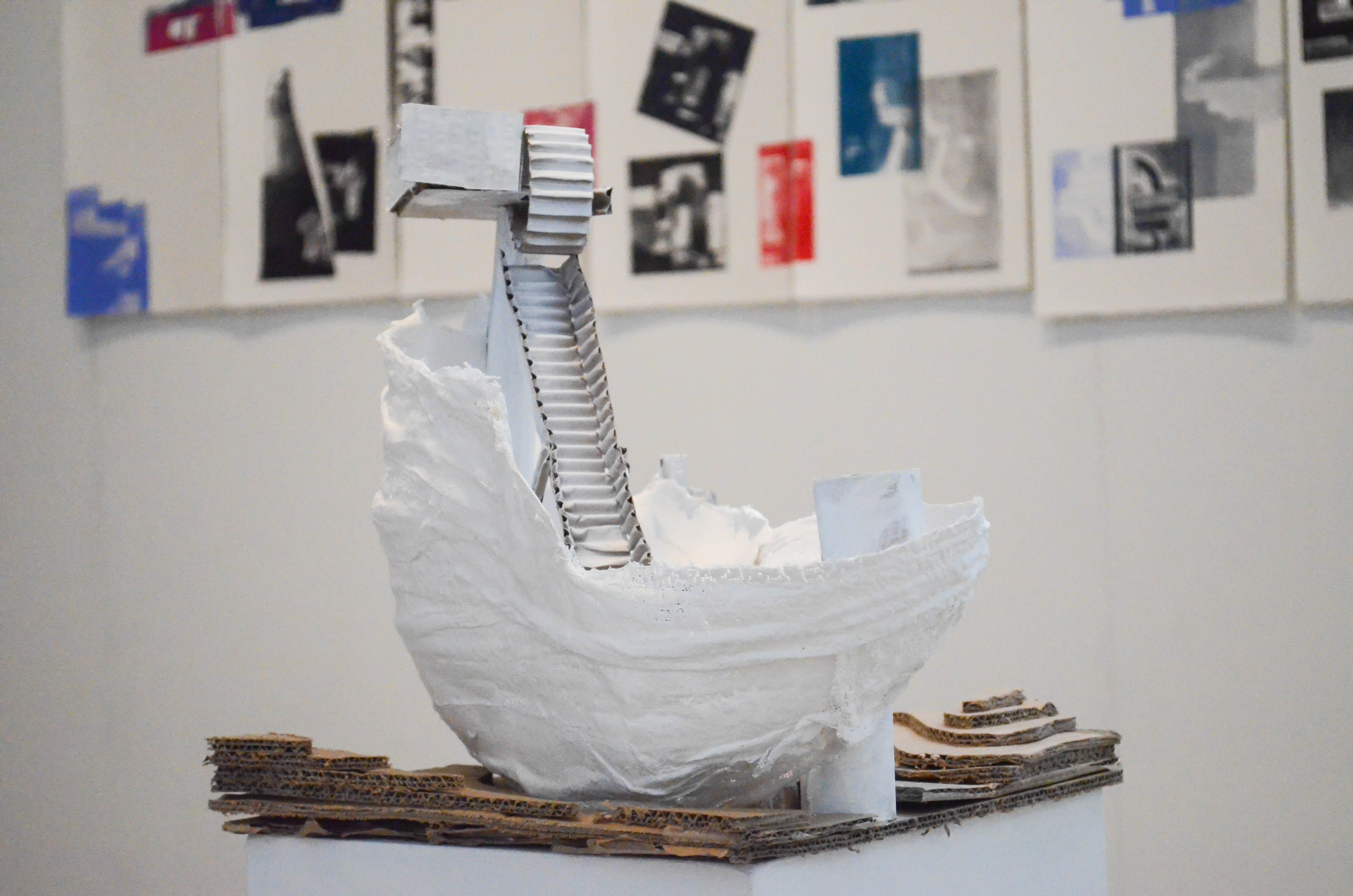 Weisner’s thesis, “Splice Graft Tangle Nest,” consists of a series of prints and sculptures constructed out of unconventional materials like cardboard.