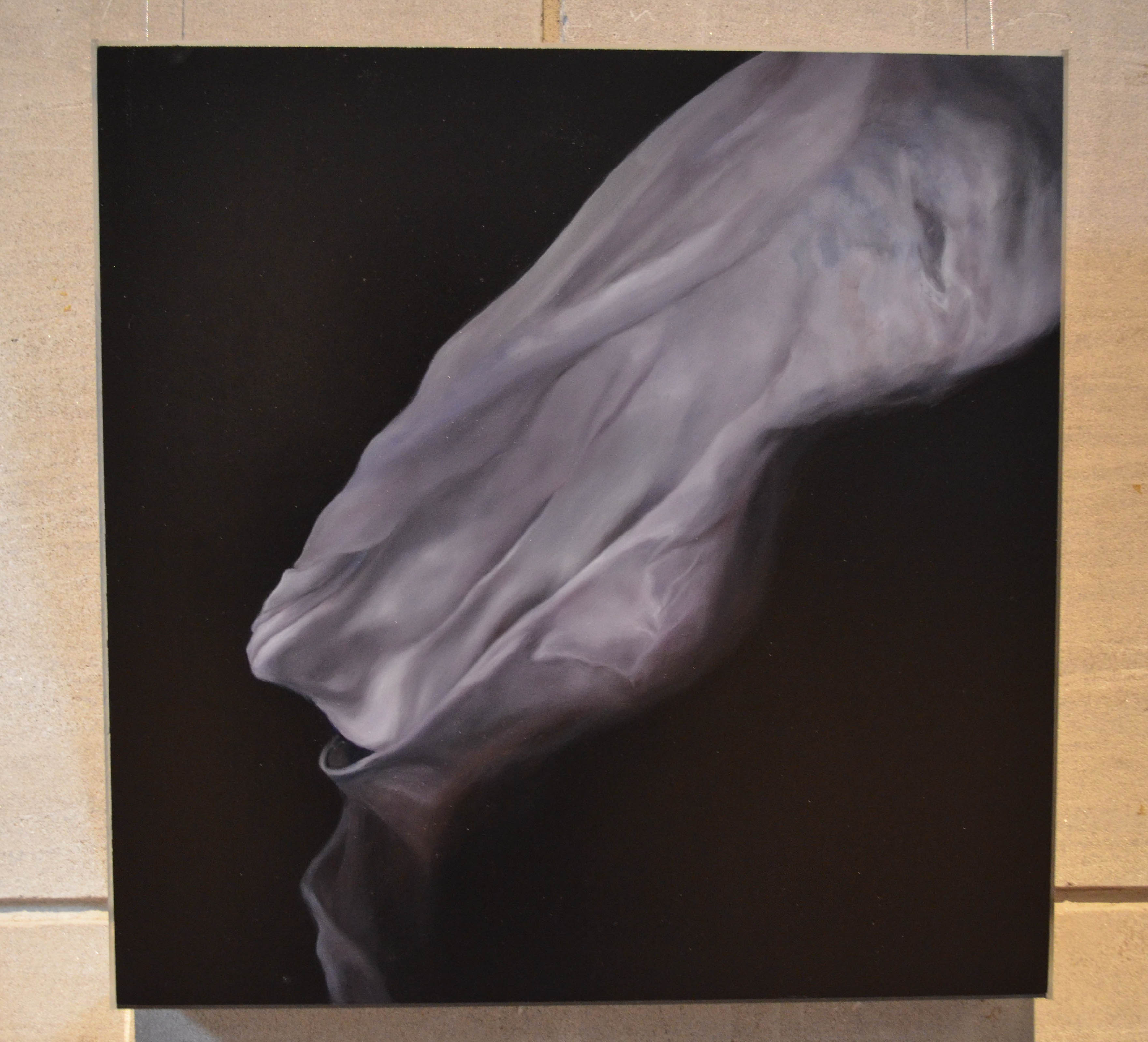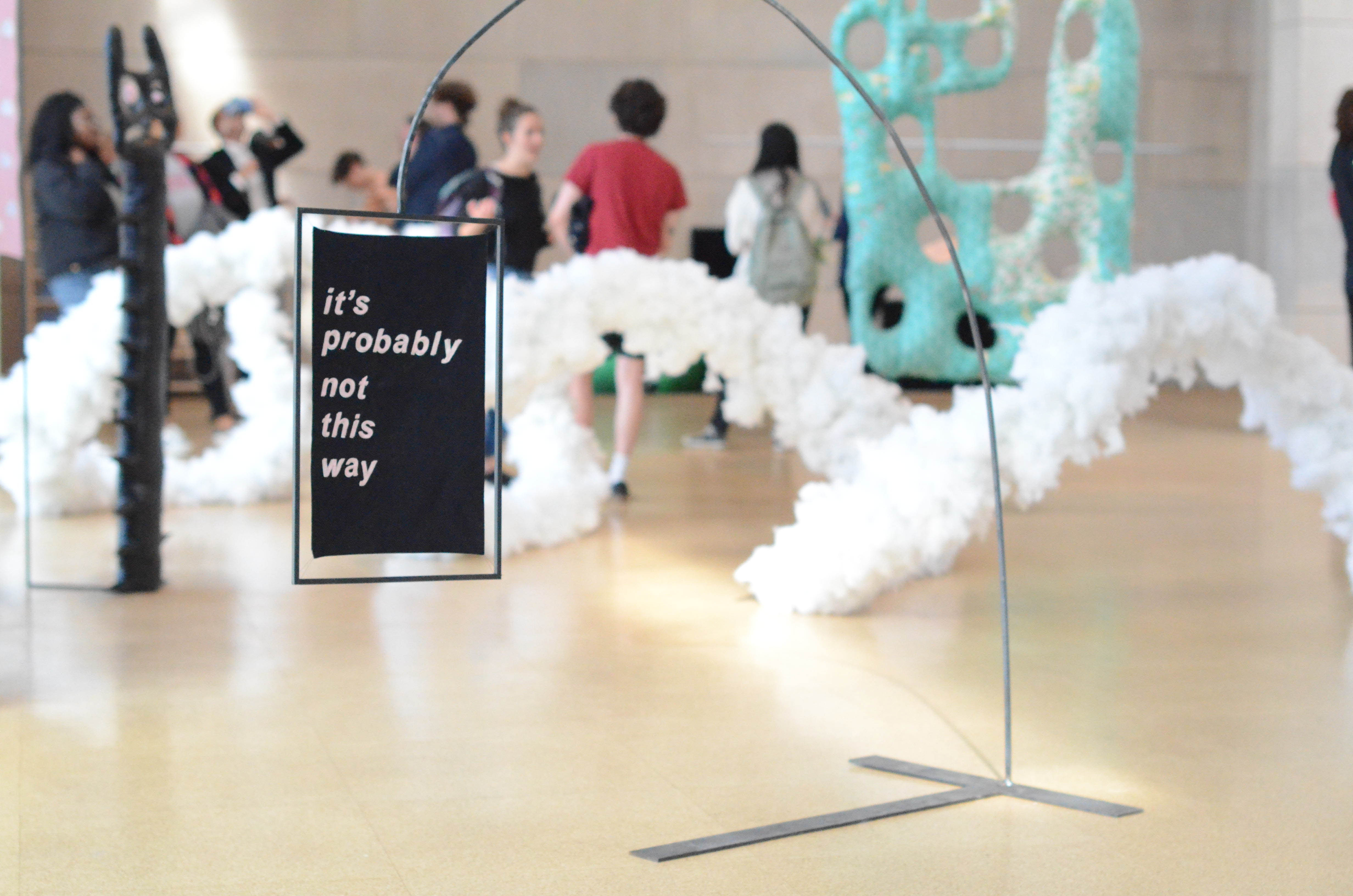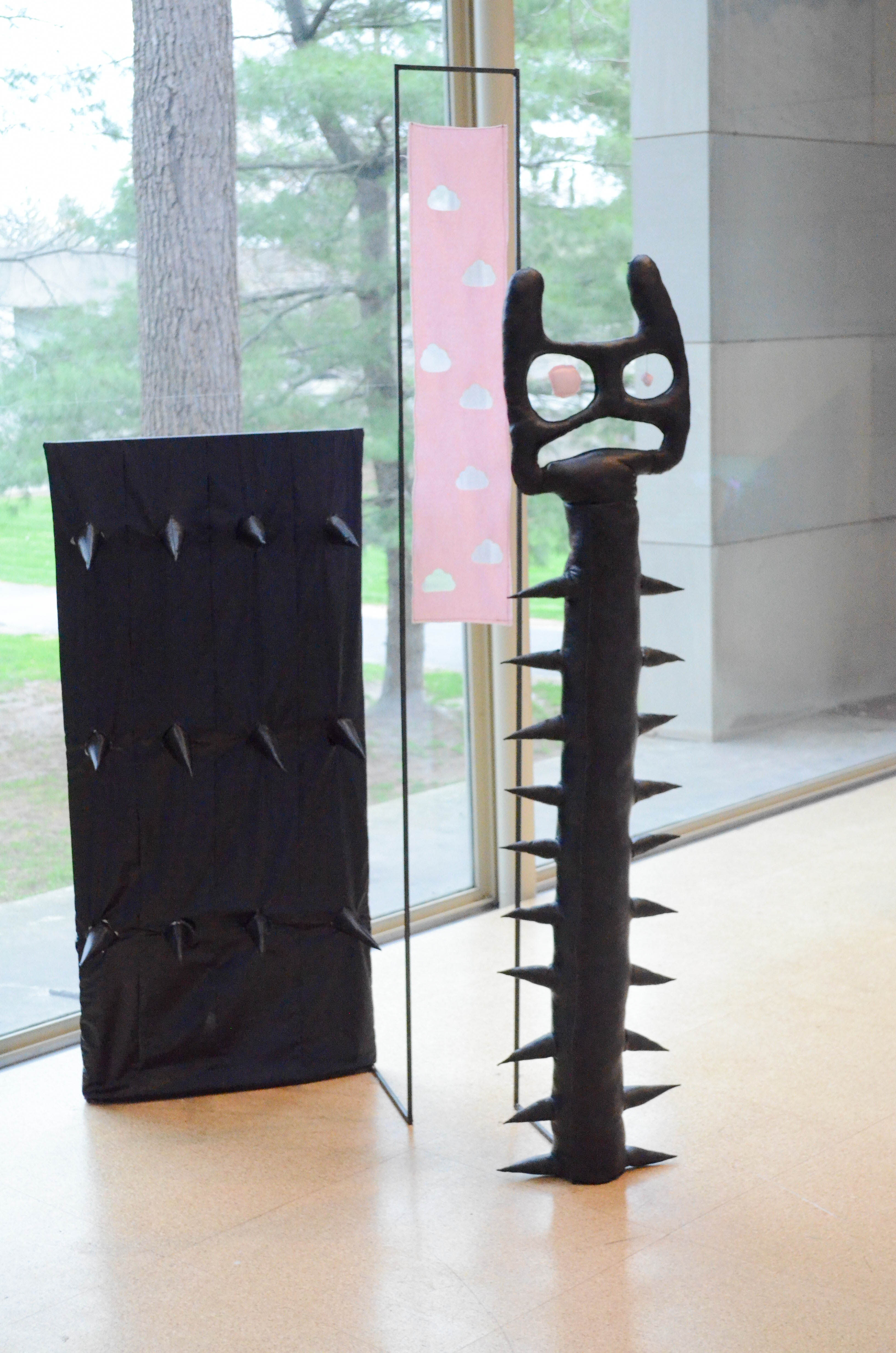 “I actually decided my materials before my concept,” Gilbert said. “I knew I wanted to work with fabric and stuffing to create soft malleable and touchable looking work and I also wanted to use the hard black industrial steel. I was interested in these materials because although they seem like opposites, I found myself really interested in their similarities, namely their flexibility and response to weight and different pressures. Working with the materials I discovered the ways in which they could support and affect the opposite and also learned what they had in common.”