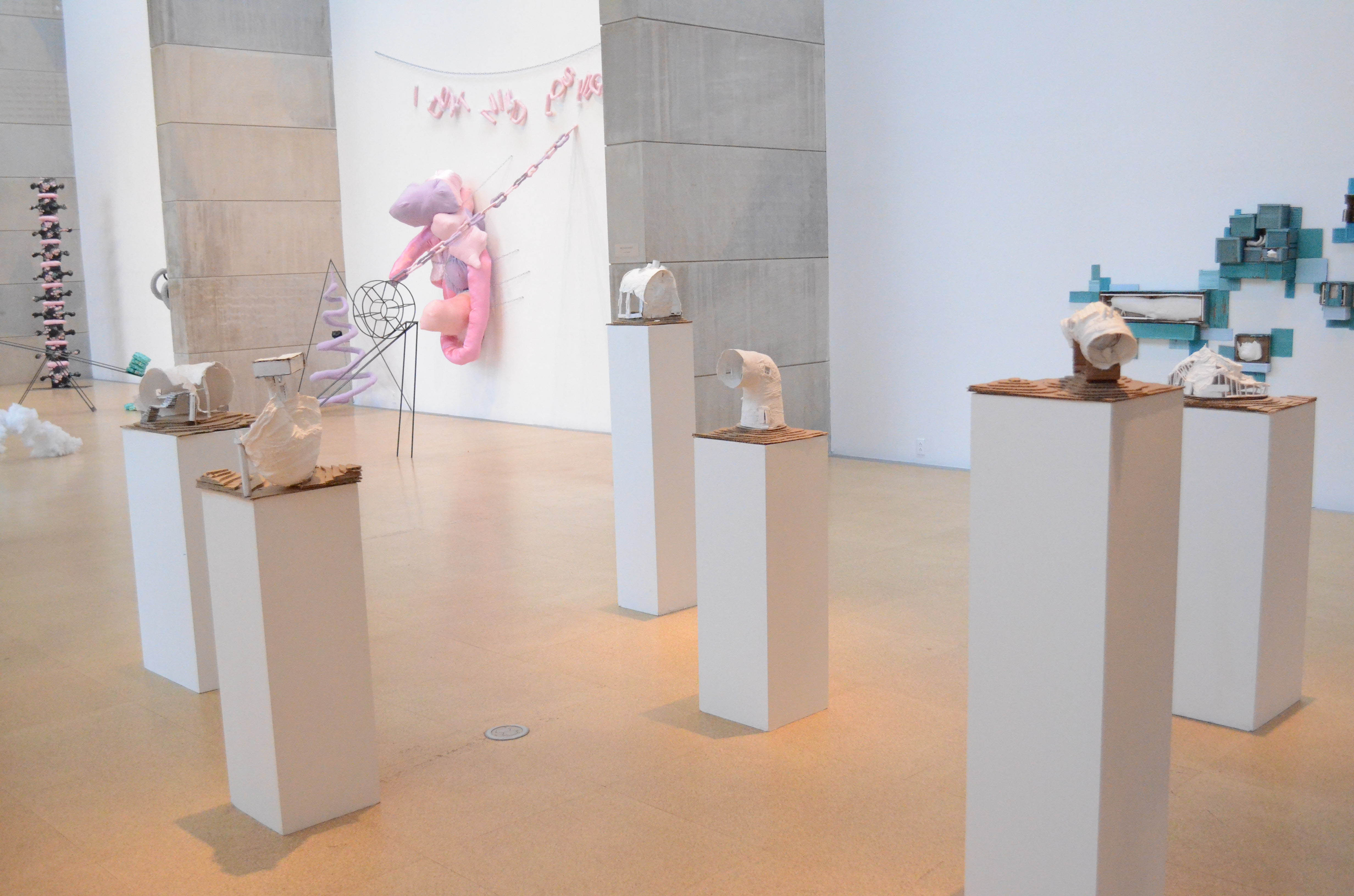 Gilbert’s thesis, “a royal rumpus,” takes a different approach to sculpture, primarily investigating the essences of selected materials which the ideas in the work are then derived from.