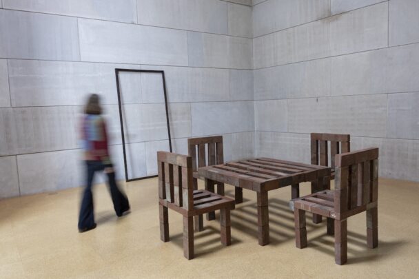 Koz also used a blend of various media in her thesis installation “What Stands,” including original drawings which she composed from memory, furniture constructed from bricks, sculptures, and wood constructed and burnt with a traditional Japanese fireproofing method called shou sugi ban.