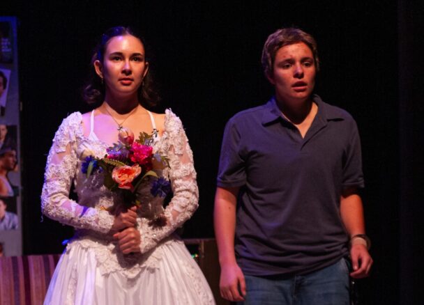 Written by American playwright Samantha Hurley, “I’m Gonna Marry You Tobey Maguire” follows 14-year-old Shelby Hinkley (Kiara Reeves ’26), president of the Tobey Maguire online fan club, as she endeavors to marry her one true love, Mr. Maguire. Set in 2004, Tobey Maguire (Natalie Piergrossi ’28) is at the height of his career, and there is nothing Shelby desires more than to be his bride. To ensure a successful wedding, Shelby tracks down his location, tosses him in a bus, and locks him in her basement.