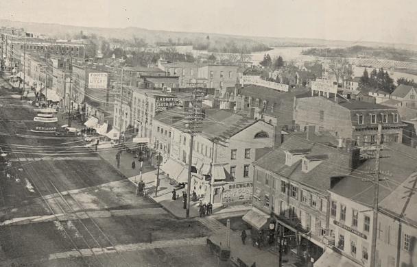 Steam trains hauled freight and long-distance passengers in and out of town, but they wouldn’t help a passenger get from the ferry to one’s boarding house, or from the depot to the factory gate. Horse-drawn streetcars promised something different: slow, frequent, local service that connected the river, shops, mills, and neighborhoods. Streetcars filled in the everyday gaps that the big steam roads left behind. As the Argus put it: “This is a convenience that is much needed.