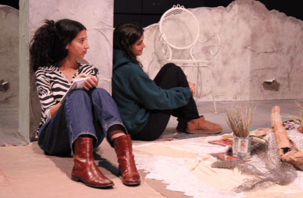 The characters attempted to continue their search for whatever originally enticed them in Amargosa, now in the midst of forced isolation during the unknown national crisis. To calm their group’s growing anxieties, tourists Ivy (Zoe Ferguson ’28) and Finn (Quinn Tolman ’29) staged an impromptu show encompassing and retelling the life of Marta Becket. Cursed with talent and an overbearing mother, Marta—born Martha—had never experienced pure, self-directed joy in performing. Ultimately, she decided to abandon her success and escape to Death Valley Juncture, where she performed at the Amargosa Opera House every night, whether anyone is in the audience or not.