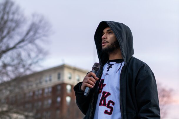 Special Collections Cataloging Librarian Pax Crowley, who has previously been involved with local activism in both Middletown and New Haven, was one of the demonstrators present at the Green.