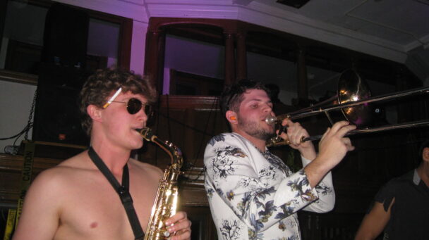 Certainly, the musicians in Catfish Malaysia possess uber amounts of musical proficiency and comprehension. Jack Pagano ’28 (also known as Hobbes, Jack Trombone, or Triplet Pagano) is known for the trombone but is also incredibly savvy with performance keyboarding and lights; Theo Klagsbrun ’28 breaks the imposed limits upon the bass instrument, innovating on its sound whilst crowdsurfing. Longstreth casually rips Chuck Berry; Alec Pederson’s ’28 deep knowledge of jazz brings in another distinct sound. And yet, it is their panache and chaotic spontaneity that truly distinguishes them from other groups.