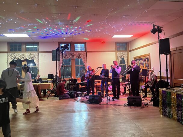 While many Middletown residents came in their own carnival costumes, festive beads and feathered masks were available throughout the room for anyone to wear. Lines for jambalaya and king cake filled the space as the Trevor Davis Dixieland Jazz Affair, a seven-piece Dixieland band, took to the makeshift stage.