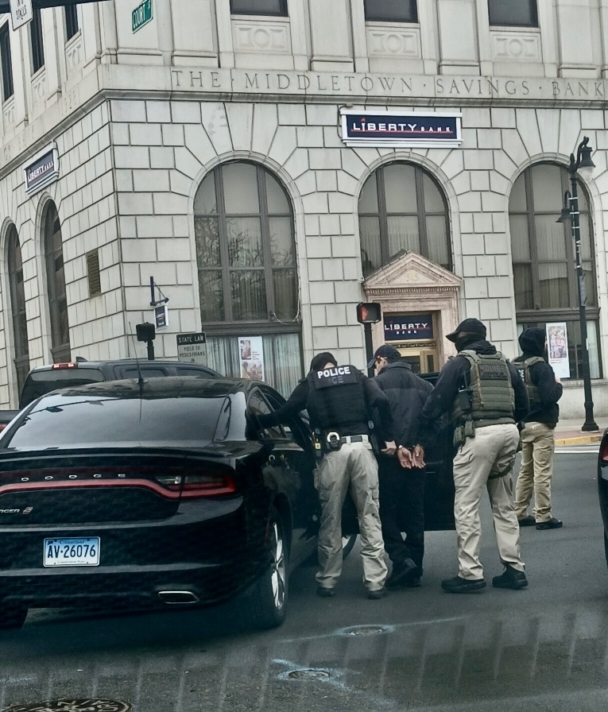 In one of the detainments, a male driver was surrounded by four vehicles at the corner of Court St. and Main St. at 11:40 a.m. Onlookers photographed him being led, in handcuffs, into a black Dodge Charger with a Connecticut license plate by two U.S. Immigration and Customs Enforcement (ICE) agents. At least one of the agents wore a vest identifying them as working for ICE.