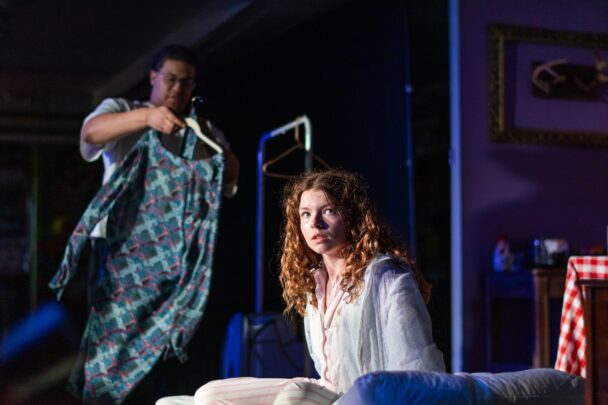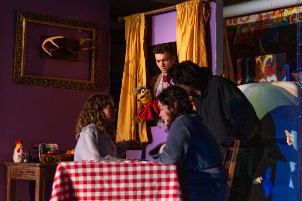 Despite the space, set designer Ollie Hoffman-Paul ’26 managed to create a stage that felt intimate but not cramped through flats and bead curtains, which they said “added an auditory element to the performance and helped create a more homey vibe in an otherwise strange house.”