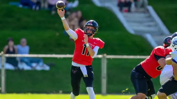 On Saturday, Oct. 4, in his third career start, Fitzsimons went 20/23, passing for 365 yards and five touchdowns in the Cards’ 56–14 demolition of the Hamilton Continentals. His five touchdown passes were the most recorded by a Cardinal quarterback since 2016. For his incredible efforts, the New England Football Writers Association (NEFW) awarded Fitzsimons with the Gold Helmet Award, given weekly to the top student athlete playing in New England in Division II/III.